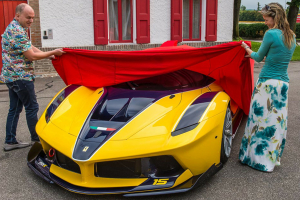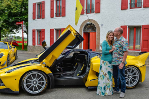 Daher kann man sich ihre Freude vorstellen, als ihr Mann sie zu ihrem Geburtstag zu einem Transkontinental-Trip nach Fiorano einlud, damit sie dort mit ihrem 599XX Evo ein paar Runden auf der Ferrari-Rennstrecke drehen könne. Doch es kam noch besser, denn dort wartet unter einem roten Tuch besagtes Geburtstagsgeschenk, das von einem 860 PS starken V12-Aggregat und einem Elektromotor angetrieben wird und lediglich 32 Mal gebaut wurde.
