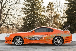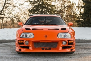 Das Modell stammt aus dem Jahre 1993 und wurde von Eddie Paul für The Fast And The Furious komplett überarbeitet. Überrollbügel, ein verstärktes Fahrwerk und Rennsitze runden die – sagen wir, flippige – Optik ab. Die Supra verfügt über den bekannten 2JZ-Motor mit rund 220 PS und ein Fünfgang-Getriebe. Sogar die originalen Nitroflaschen sind noch an Bord, jedoch (leider) nicht angeschlossen. Für welche Aufnahmen dieses Modell explizit genutzt wurde, ist ebenso wenig bekannt wie der bei der Auktion erhoffte Preis.