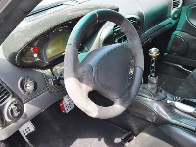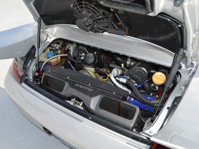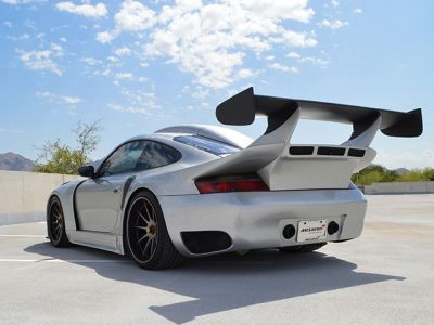 Je nachdem, welcher Quelle man glauben darf, leistet dieser GT2 Umbau zwischen 840 und 1.160 PS – abhängig auch davon ob normales Benzin, oder E85 getankt wird. Sein Besitzer hat über Jahre hinweg keine Kosten und Mühen gescheut, um diesen straßenzugelassenen RSR Umbau Wirklichkeit werden zu lassen. Keine Schraube blieb unberührt, kein Karosserieteil unverändert. Das sequentielle Getriebe stammt vom deutschen Spezialisten Cartronics, das Fahrwerk wurde von Eisenlohr Racing aufgebaut. Alle am Fahrzeug vorgenommenen Karosserieveränderungen sind mit Teilen aus Carbon und Kevlar umgesetzt worden. Maßgeblich beteiligt am Umbau waren die Porsche Spezialisten von 911 Design in Kalifornien. Geschätzter Umbaupreis: 700.000 USD!