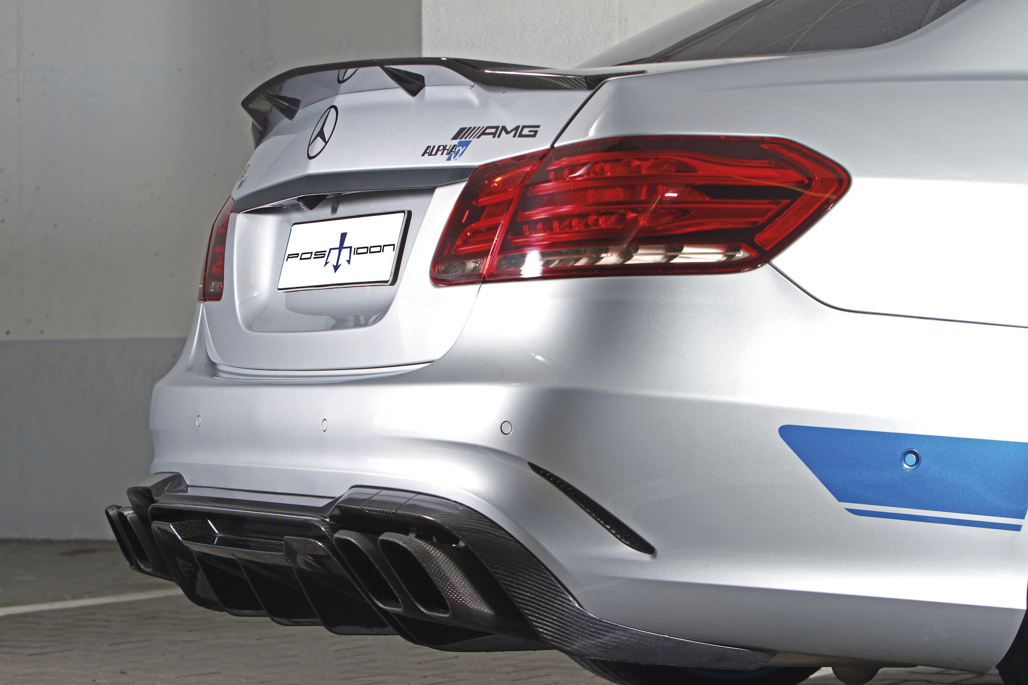Da das Getriebe im Serienzustand dem fast doppelten Drehmoment im Vergleich zum Standard E63 S nicht standhalten würde, verstärkten es die Posaidon-Techniker und verbauten „nebenbei“ an Vorder- und Hinterachse jeweils eine Differenzialsperre. Wer sich nach dieser Lektüre noch traut, die Schalensitze aus dem C63 Black Series (sparen pro Sitz 40 Kilogramm) zu entern und das rechte Pedal in Richtung Ölwanne zu drücken, erntet die Früchte dieser Arbeit: dann geht es in 2,8 Sekunden auf 100 Km/h, die Spitzengeschwindigkeit liegt bei 368. Sie wurde aber mit Rücksicht auf die Reifen auf 350 begrenzt.