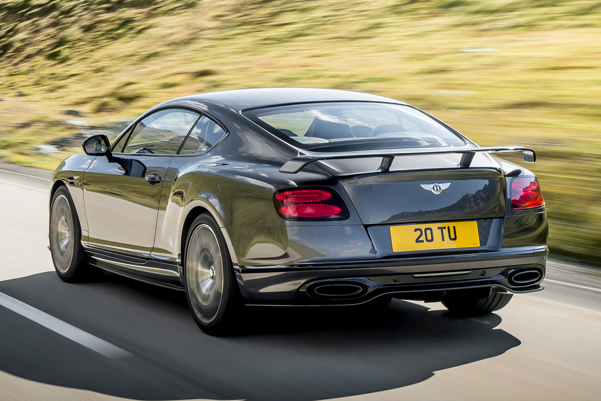 Der Sprint von 0 – 100 soll in ca. 3.5 Sekunden erfolgen. Damit wäre der Bentley Continental Supersports sogar schneller als der Continental GT3 R, der bisher mit 3.8 Sekunden das sprintstärkste Modell im Portfolio der Engländer war. Wie eben dieser GT3 R, wird auch der Supersports über ein Torque Vectoring System, ein tiefergelegtes und härteres Fahrtwerk und Keramikbremsen verfügen. Außen gibt es viel Carbon und einen auffälligen Heckspoiler, der klar zeigt, dass der Bentley Continental Supersports mehr sein will, als ein braver Gran Turismo.