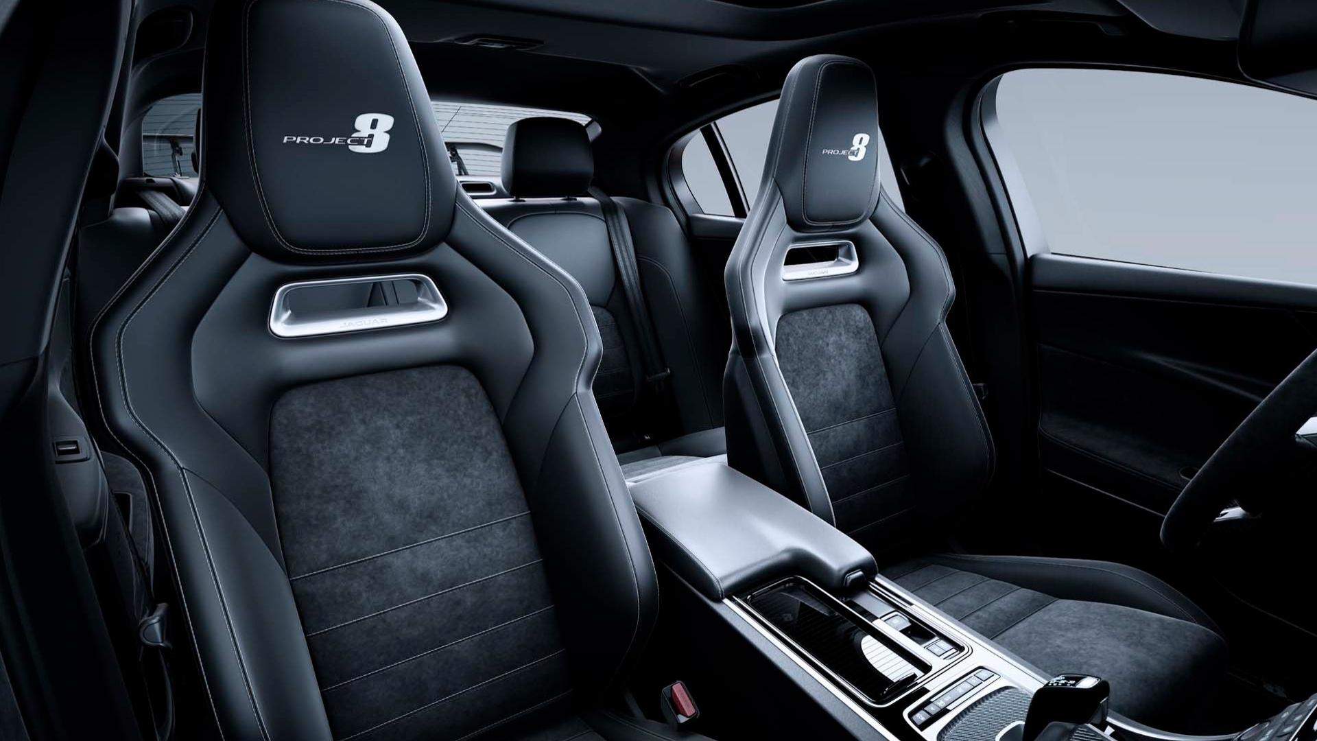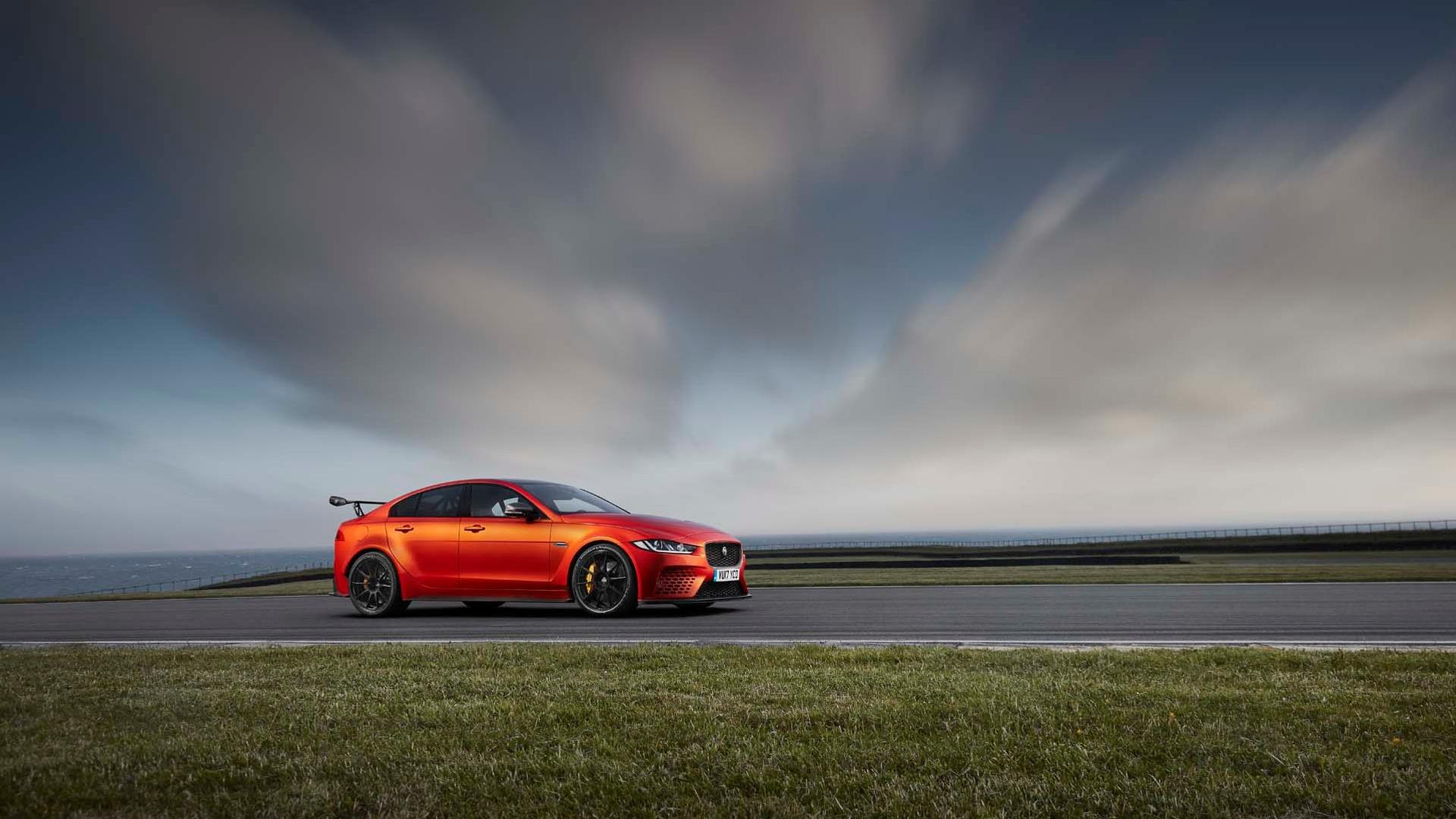 {1}Der bereits aus dem F-Type SVR bekannte Fünfliter-V8 leistet nunmehr dank Kompressoraufladung satte 600 PS (F-Type: 575) und 700 Newtonmeter maximales Drehmoment. Mit diesen Werten liegt der XE zumindest hinsichtlich der Leistung nahezu gleichauf mit den deutschen Kontrahenten. Doch anders als E 63 S AMG, M5 und RS6 setzt man bei Jaguar auch auf konsequenten Leichtbau, sofern man das bei einer viertürigen Limousine sagen kann. Motorhaube, Front- und Heckschürze, Schweller und Heckspoiler bestehen aus Carbon. Schmiedefelgen in 20 Zoll, Schalensitze, der Entfall der hinteren Rückbank (für alle Märkte außer Nordamerika) sowie Carbon-Keramik-Bremsen runden die Leichtbaumaßnahmen ab. Ein Gewicht von beachtlichen 1.745 Kilogramm ist ein Wort. Ein E 63 S 4Matic+ wiegt satte 200 Kilogramm mehr. Und braucht deswegen auch länger (3,5 Sekunden) von 0 auf 100 Km/h: der Jaguar benötigt lediglich 3,3 Sekunden.