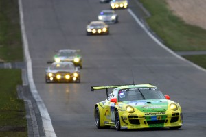 Die ersten Runden glichen eher einem 4h als einem 24h-Rennen, denn auch der Haribo-Porsche konnte die vier Audi R8 zu Beginn des Rennens überholen. Die erste Boxenstopp-Runde sorgte dann wieder für eine buntere Durchmischung des Feldes, doch die Pace der Porsche schien unantastbar für die Konkurrenz. Die Schnitzer-Mannschaft mit den beiden M3 GT2 musste bereits nach einer Stunde einen Rückschlag hinnehmen, als das zweite Fahrzeug mit der Startnummer 26 nach einem missglückten Überrundungsmanöver auf der Grand-Prix-Strecke heftig in die Leitplanken krachte und an die Box geschleppt werden musste. Zwar wurde das Fahrzeug rund um Dirk Müller und Andy Priaulx zügig wiederhergestellt, aber das Rennen schien gelaufen. Auch das Schwesterfahrzeug konnte den Anschluss an die Spitze nicht halten und drehte stattdessen kontinuierlich seine Runden in die einsetzende Nacht.