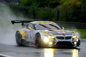 Doch das Wetter wurde dem starken Boliden aus Großbritannien zum Verhängnis. Die massive Leistung des sechs Liter großen Zwölfzylinders war einfach nicht auf die nasse Strecke zu bringen und so wurde der gelb-blaue 007 am Ende bis auf Platz zehn durchgereicht. Ähnlich wie dem Aston Martin erging es auch den im Trockenen nicht zu schlagenden Audi R8 LMS ultra. Das Fahrverhalten der Mittelmotor-Renner war unter den sintflutartigen Regenfällen der einsetzenden Nacht kaum mehr zu bändigen. Viele Quersteher, Dreher und gar Abflüge waren zu verzeichnen und so schlug die Stunde der Konkurrenz aus Stuttgart und München. Klammheimlich stand plötzlich der Manthey-Porsche an erster Stelle auf dem Zeitenmonitor. Die erfahrene Mannschaft rund um den Teamchef Olaf Manthey und die Raeder-Brüder sorgte mit einer cleveren Taktik trotz der neuen Mindestzeiten-Regelung während der Boxenstops dafür, dass „der Dicke“ mit einem Boxenstop weniger als die Konkurrenz auskam, zudem lenkte das Fahrerteam den 911 ohne Zwischenfälle durch die Regenfluten.