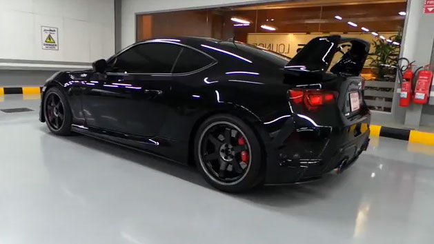 Der Besitzer dieses wohl einzigartigen Toyota GT86, Ebrahim Kanoo vom EKanoo Racing Team, nahm einen alten 2JZ GTE-Basismotor einer Toyota Supra, packte einen ausreichend dimensionierten Turbolader obendrauf und verpflanzte ihn samt dem Supra-eigenen Sechsganggetriebe unter die Haube der kleinen japanischen Flunder. Dank modifizierter Ladeluftkühlung und vergrößerter Abgasanlage werden angeblich um die 600 PS erreicht, doch wenn’s nach Kanoo gehen soll, dürften die noch lange nicht das Ende der Fahnenstange bedeuten. Wir dürfen gespannt sein und halten Euch auf dem Laufenden!