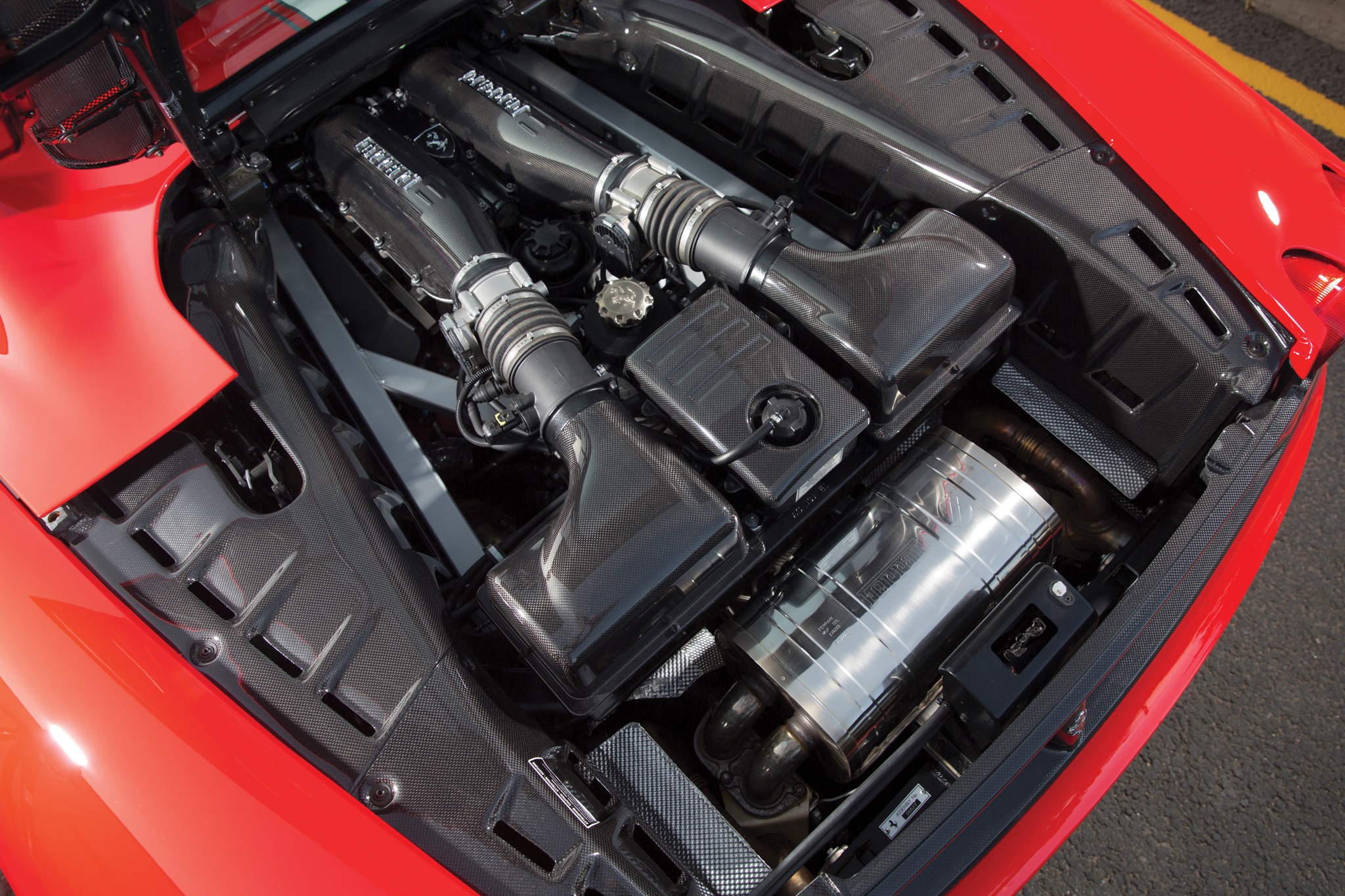 Was nicht heißt, dass er noch schneller wäre als die Berlinetta: zwar fehlt dem Spider das Dach, doch die notwendigen Versteifungen machen jeglichen Gewichtsvorteil zunichte: so wiegt er neunzig Kilogramm mehr als das Coupé und liegt damit folglich auf dem Niveau eines normalen F430. Den normalen Spider hingegen unterbietet er deutlich, auch in den Fahrleistungen: der unverändert 510 PS starke 4,3-Liter-V8 peitscht die beiden Insassen bei Bedarf in 3,7 Sekunden auf Landstraßentempo und setzt sie mit 315 Km/h Höchstgeschwindigkeit einem wahren Gefühlsorkan aus – offen, natürlich. Geschaltet wird stets per sequentiellem Getriebe, als Handschalter war schon der Scuderia nicht zu haben.