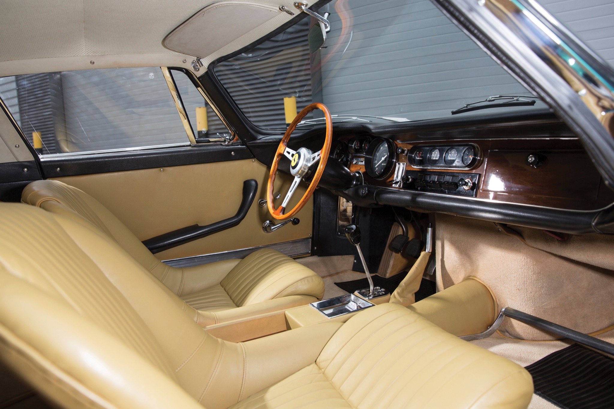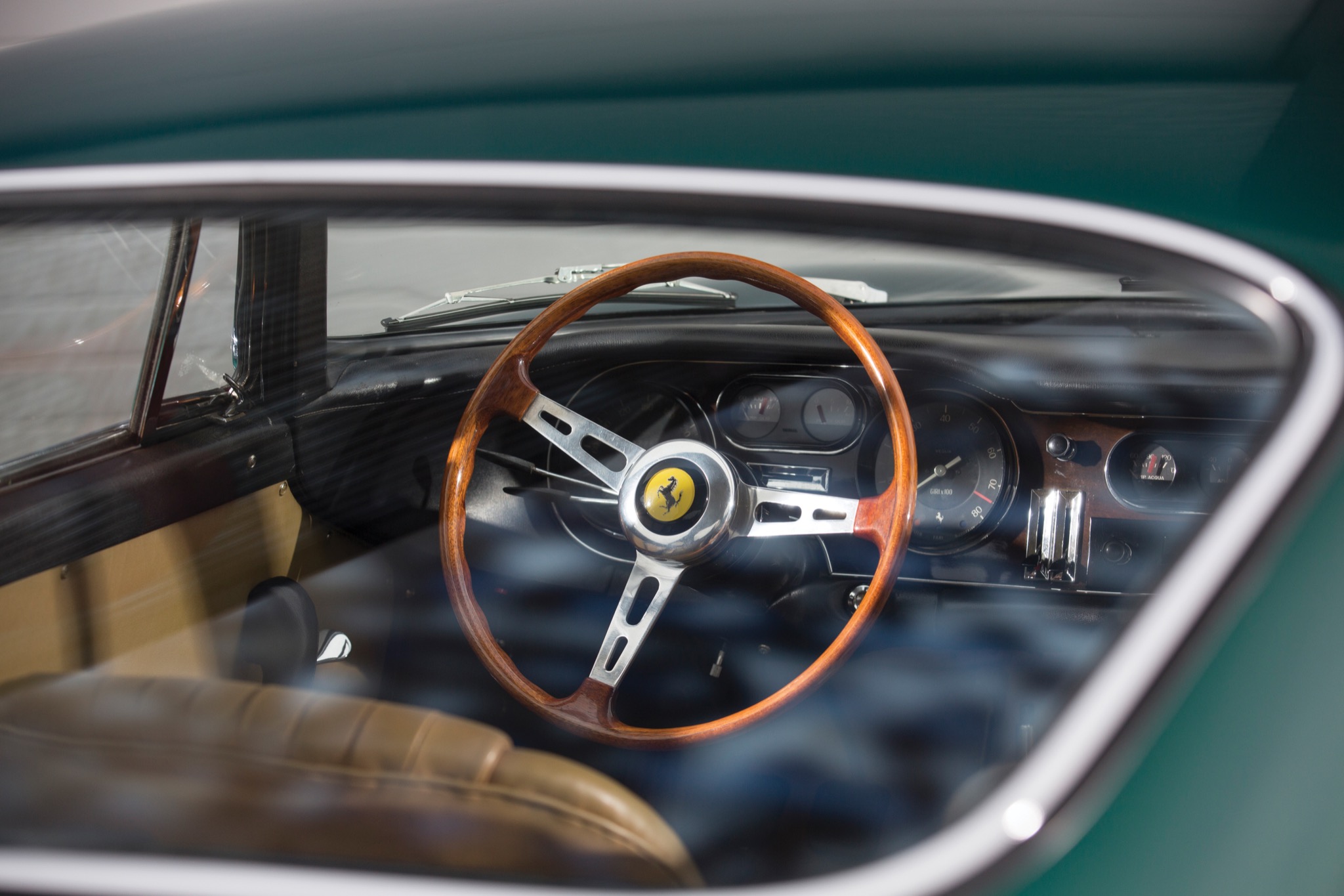 Das Design der als GTB (hier im Bild) und GTS (die offene Variante) vorgestellten Modelle war dabei im Vergleich zum 250 gar nicht in so großem Maße verändert worden, obwohl die beiden Modelle aus unterschiedlichen Designstudios entstammten: während der GTB bei Scaglietti gebaut wurde, entstand der GTS wie viele der 250er bei Pininfarina. Auffällig beim GTB war insbesondere aber die aerodynamischere Form der Frontschürze mitsamt der gläsernen Abdeckungen vor den Scheinwerfern. Wer 275 aus den Nachfolgejahren ansieht und mit unserem in Verde Pino lackierten Exemplar vergleicht wird möglicherweise feststellen, dass die Frontpartie bei den späteren Modellen länger erscheint und dies auch ist. Ein Kniff von Ferrari, um stärkeren Abtrieb auf die Vorderachse zu generieren und damit einen stabileren Geradeauslauf bei höheren Geschwindigkeiten zu ermöglichen. Die sogenannten Short-Nose-Varianten sind jedoch (noch) begehrter auf dem Sammlermarkt, auch wenn sie nicht seltener sind.