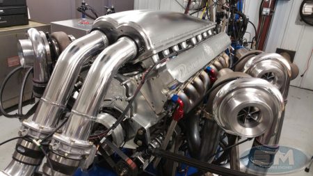 Und die Jungs von Steve Morris haben noch mehr mit dem neuen Motor vor. Wenn erstmal ihr Prüfstand auf eine Leistung von über 4.500 PS ausgelegt ist, soll es noch eine Race-Variante des V16-Quadturbo-Motors geben. Dafür werden dann noch ein paar Motor-Innerrein abgeändert und der Ladedruck etwas weiter angehoben. Spätestens dann dürften wohl mehr als 5.000 PS anliegen.