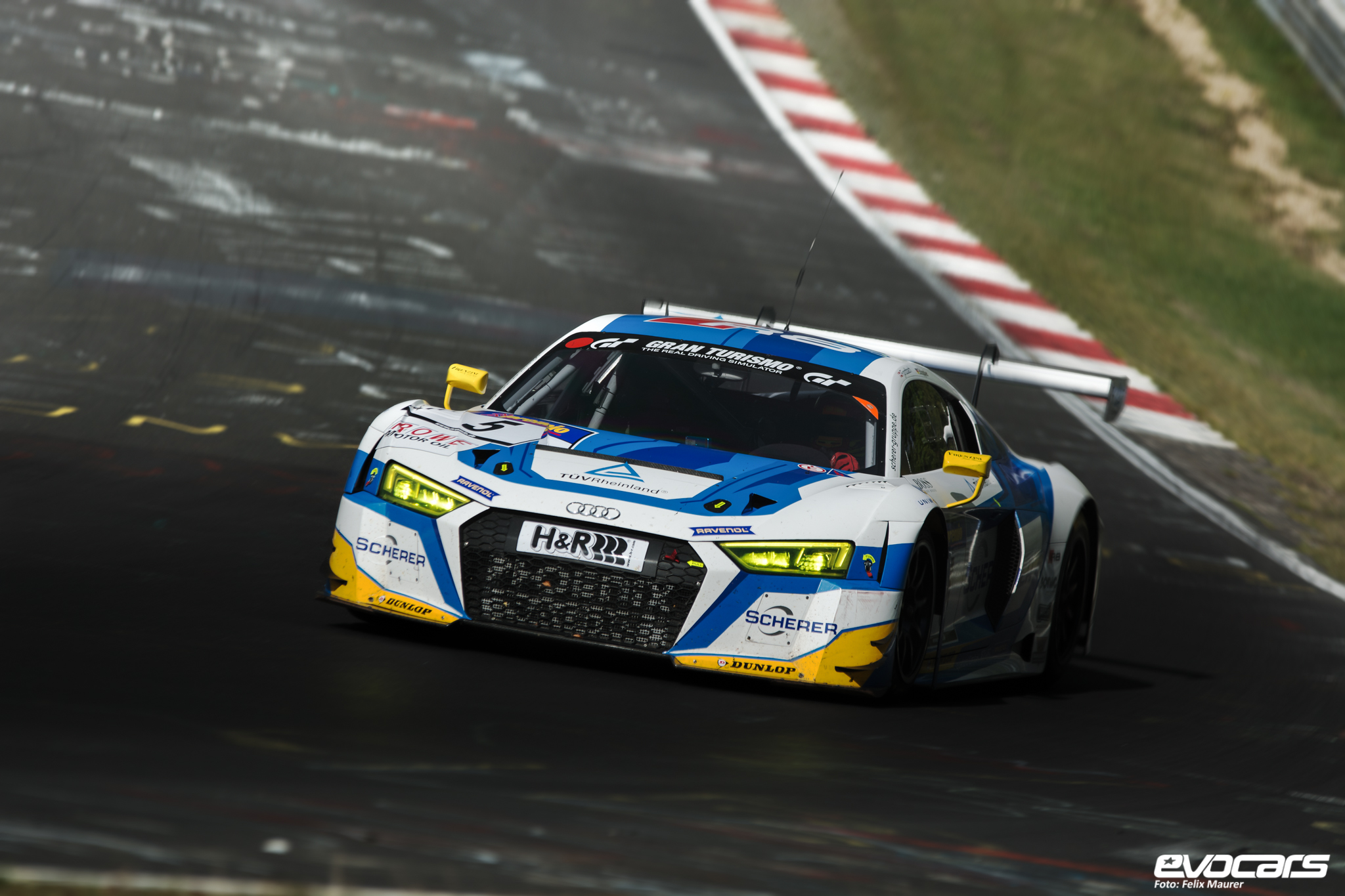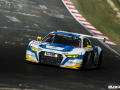 Zu den Favoriten mit kleineren Problemen zählten die zweifachen Sieger der Saison Mies und De Phillippi auf Audi R8. Der US-Amerikaner De Phillippi erlebte in der Startphase des Rennens einen „big moment“, als er eingangs Brünnchen die Streckenbegrenzung streifte. „Ich fahre gerne, wenn es regnet“, erklärte er, „aber diese Mischverhältnisse mit halb nasser, halb trockener Piste waren extrem schwierig.“ Sein Teamgefährte nahm das Ergebnis gelassen hin: „Wir können mit Platz drei zufrieden sein“, sagte Mies. „Wir sind zwei Rennen nicht in der VLN am Start gewesen. Die Spitzengruppe ist so eng beieinander, dass uns die acht Stunden Renndistanz am Ende einfach fehlen.“ Ebenfalls zufrieden zeigten sich Sims und Dusseldorp über Platz zwei. „Gerade in der Schlussphase wurde es noch einmal extrem spannend, als wieder leichter Regen einsetzte“, gestand Dusseldorp. „Da muss man einfach hellwach sein, immerhin haben wir zu diesem Zeitpunkt voll gepushed, um Platz zwei gegen den Land-Audi abzusichern.“