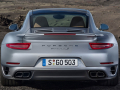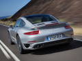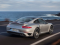 {1}Denn der aufgeladene 3,8-Liter-Boxermotor im Heck des neuen Turbos schickt seine Kraft an ein verbessertes Allradsystem mit neuer Lamellenkupplung und ermöglicht dem Zuffenhausener so eine Sprintzeit von 3,1 beziehungsweise 3,2 Sekunden (Turbo S / Turbo mit Sport Chrono Paket) auf Tempo 100. Die Höchstgeschwindigkeit gibt Porsche mit 318 km/h (Turbo S) und 315 km/h /Turbo) an.