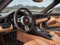 Das Interieur ist für beide 911 Turbo-Modelle komplett neu gestaltet und baut auf dem der 911 Carrera-Familie auf. Das S-Modell ist besonders umfangreich ausgestattet und bietet unter anderem ein exklusives Interieur in den Bicolor-Farben schwarz/carrerarot, die adaptiven Sportsitze Plus mit 18-Wege-Verstellung und Memory. Darüber hinaus sind die Sitzrückenschalen beledert mit Doppel-Kappnaht und verschiedene Elemente in Carbon-Optik dargestellt. Das Bose-Soundsystem ist wie bei den Vorgängermodellen serienmäßig installiert, auf Wunsch ist erstmals eine Burmester-Anlage lieferbar. Zusätzlich stehen jetzt optional der radargesteuerte Abstandsregeltempostat sowie die kamerabasierte Verkehrszeichen- und Tempolimit-Erkennung zur Wahl.