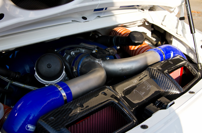 • 3,9 Liter Hubraummotor • 9ff Motorblock Verstärkung • Doppelte Kolben Spritzölkühlung je Zylinder • 9ff / Pankl Schmiedekolben • 9ff Stahl Zylinder • Pankl Titan Pleuel • RS Kurbelwelle • 9ff Zylinderköpfe mit großen Ventilen und Kanälen • 9ff Nockenwellen „VarioCam“ mit variabeler Einlass-Stellung • 9ff Aluminium Ansaugbrücke voll verschweißt • Doppeleinspritzdüsen • 9ff Benzinanlage und Druckregler Ladedruckgesteuert • 9ff Edelstahl Fächerkrümmer • Garrett GT1200R Turbolader kugelgelagert und wassergekühlt • Externe Waste-Gates • 3-stufige Ladedruckregelung mit Bedienung-Knöpfen am Lenkrad • 9ff Abgasanlage mit Titan Endschalldämpfer und Klappensteuerung • 9ff Karbon Luftfilterkasten mit großer Frischluftansaugung und Sportluftfilter • Doppeltes Schubumluftventil • Geänderter MAP-Sensor • 8.200 U/min Drehzahlbegrenzer • 1,6 bar Ladedruck (0,8 und 1,2 bar schaltbar)