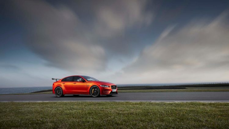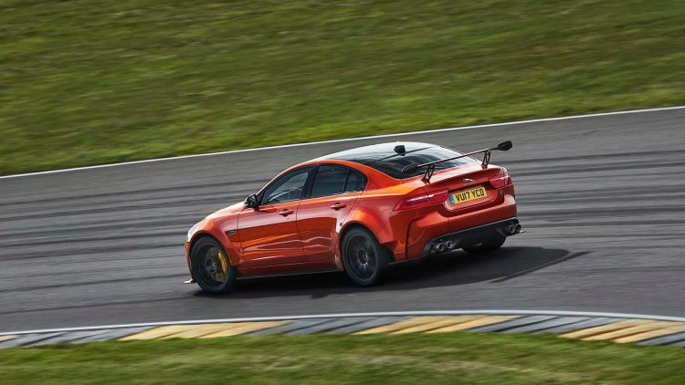 {1}Der bereits aus dem F-Type SVR bekannte Fünfliter-V8 leistet nunmehr dank Kompressoraufladung satte 600 PS (F-Type: 575) und 700 Newtonmeter maximales Drehmoment. Mit diesen Werten liegt der XE zumindest hinsichtlich der Leistung nahezu gleichauf mit den deutschen Kontrahenten. Doch anders als E 63 S AMG, M5 und RS6 setzt man bei Jaguar auch auf konsequenten Leichtbau, sofern man das bei einer viertürigen Limousine sagen kann. Motorhaube, Front- und Heckschürze, Schweller und Heckspoiler bestehen aus Carbon. Schmiedefelgen in 20 Zoll, Schalensitze, der Entfall der hinteren Rückbank (für alle Märkte außer Nordamerika) sowie Carbon-Keramik-Bremsen runden die Leichtbaumaßnahmen ab. Ein Gewicht von beachtlichen 1.745 Kilogramm ist ein Wort. Ein E 63 S 4Matic+ wiegt satte 200 Kilogramm mehr. Und braucht deswegen auch länger (3,5 Sekunden) von 0 auf 100 Km/h: der Jaguar benötigt lediglich 3,3 Sekunden.