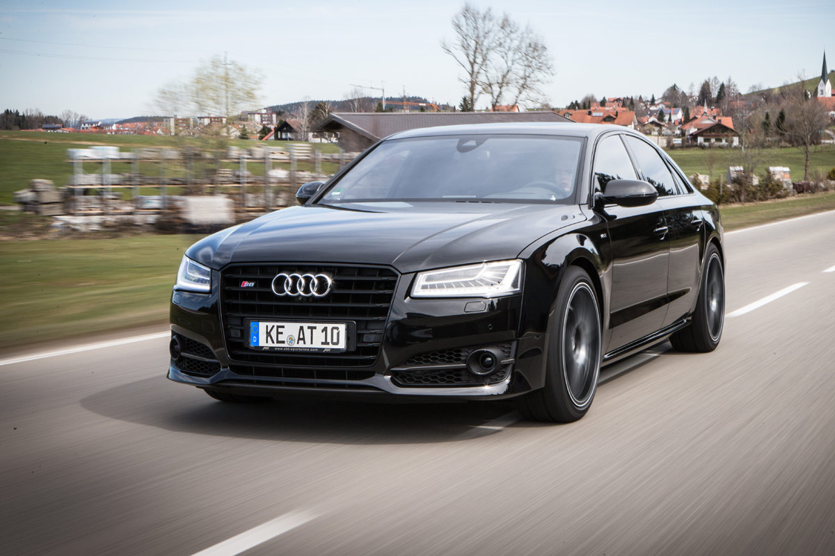 Auf bis zu 675 PS drückt Abt Sportsline die Power des Vierliter-Biturbo-V8 unter der Haube des Audi S8. Dass klingt schon mal nicht schlecht. Doch spätestens nach der Vorstellung des Audi S8 Plus mit serienmäßig 605 PS war Abt zum Handeln gezwungen. Die Antwort auf die neue Speerspitze aus Ingolstadt ließ denn auch nicht lange auf sich warten: Sie hört auf den Namen Abt S8 Plus und donnert mit 705 PS und 840 Nm voran.