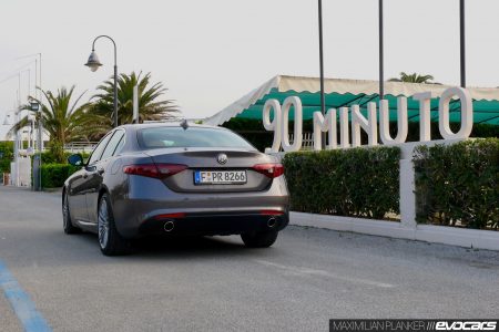 Doch braucht man das wirklich? Ist das für das Fahrerlebnis nicht vollkommen unerheblich? Der Alfa lebt nicht von seiner Multimedia-Ausstattung oder einer Armada von Assistenzsystemen, der Alfa lebt von seinem Motor, der allenfalls ein wenig leiser sein könnte, von seinem Fahrwerk, das fantastisch ist, von seiner Lenkung, die fantastisch ist und nicht zuletzt von seiner Optik, die – Sie ahnen es – fantastisch ist. Man könnte auch sagen: es ist der beste Alfa, der seit langer Zeit gebaut worden ist. Ein schöneres Ende für eine traumhafte Italienreise kann es doch nicht geben, oder?