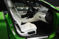 Die Farbe allein spaltet bereits die Gemüter, die einen finden es „genial“, die anderen zum Davonlaufen. Kommen außen noch die für die M-GmbH klassischen blauen Bremszangen hinzu, wird der Farbmix im Inneren mit sehr hellem Leder auf die Spitze getrieben. Doch Geschmack ist ja bekanntlich nicht streitbar. Wer genauer hinsieht, erkennt an der Karosserie kleine Änderungen, die für einen deutlichen Leistungszuwachs sprechen: Die Motorhaube aus Carbon mit eingepassten Luftauslässen stammt von Manhart Performance, der Frontspoiler (ebenfalls aus Carbon) hingegen von BMW Tuner Kelleners.