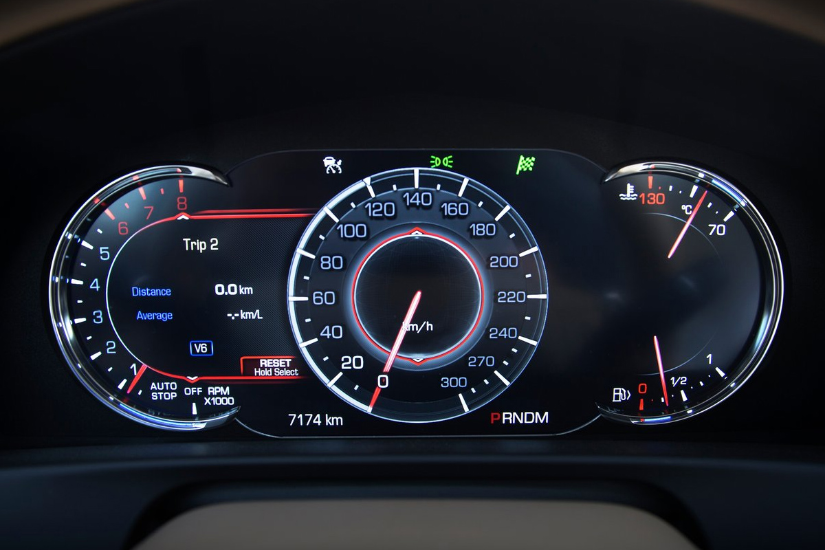 Kritik muss sich weiterhin das CUE-Multimediasystem gefallen lassen. Die Bedienung mittels Touchscreen ist zu umständlich und lenkt stark vom Fahren ab. Das Touchpad, vor der Armauflage in der Mitte, erinnert mehr an das eines 90er Jahre Laptops und lässt sich ähnlich präzise Steuern – nämlich kaum. Zwar ist das CUE-System im CT6 bereits ein großer Schritt nach vorne und unterscheidet sich in Detaillösungen auch vom Escalade – an die Einfachheit deutscher Bediensysteme reicht es jedoch nicht heran. Gut gelöst: das volldigitale Kombiinstrument mit seiner extrem hochauflösenden und klaren Darstellung. Pluspunkt: anders als Audi, verzichtet Cadillac darauf, verschachtelte Untermenüs anzubieten. Die Auswahl der Informationen, die man sich anzeigen lassen kann, ist aufs Wesentliche konzentriert – eine Navigationskarte fehlt allerdings. Das Head Up Display ergänzt in gewohnt guter Qualität das virtuelle Cockpit, könnte von der Darstellung im CT6 aber etwas schärfer sein.