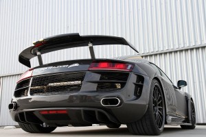 hließlich schafft der um immerhin 250 Kilogramm erleichterte Tuning-R8, dem Einsatz von reichlich Carbon-Fiber sei Dank, den Sprint auf Tempo 100 in beachtlichen 3,2 Sekunden und mit 335 km/h Höchstgeschwindigkeit ist er immerhin 15 km/h schneller als der Audi R8 GT. Neben der Gewichtsreduktion auf 1375 Kilogramm sind die Fahrleistungen vor allem auf die gestiegene Leistung des 5,2-Liter-V10 hinter den Insassen zurückzuführen. Mittels optimiertem Ansaugtrakt (inkl. Lufthutze), neuer Steuersoftware und durchsatzfreudigerer Abgasanlage bringt es der Saugmotor nun auf 601 PS bei 7400 Umdrehungen und 565 Newtonmeter bei 6400 Umdrehungen. Der Leistung angepasst wurde auch die verbaute Automatik (R-tronik).
