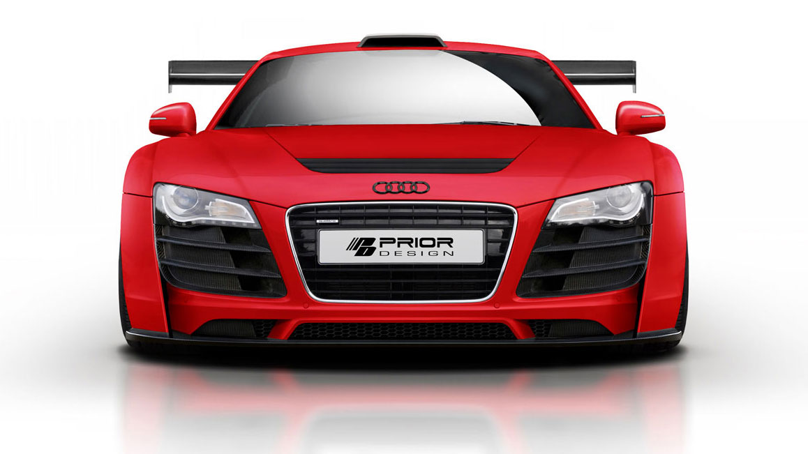 Tuner Prior Design reicht das Aufmerksamkeitsplus des Audi dennoch nicht aus und so schneidert er dem Mittelmotor-Coupé ein extrovertiertes Bodykit, das sich gewaschen hat. Nach der Montage von Frontschürze inklusive Carbonspoiler, neuer Kotflügel (vorne und hinten), neuer Motorhaube, neuer Seitenschweller, neuer Heckschürze und festem Flügel sowie einer Dachhutze ist die elegante Form des R8 schnell vergessen. Stattdessen meint man, dieses Exemplar komme direkt von einem Rennen der ADAC GT Masters oder habe sich nach seiner letzten Runde beim 24h-Rennen verfahren. Der komplette Umbausatz ist für knapp 25.000 Euro zu haben, was der deutsche TÜV dazu sagt, ist nicht bekannt. Vor allem der große Heckflügel könnte zu wüsten Diskussionen mit dem Personal des Technischen Überwachsungsvereins führen.