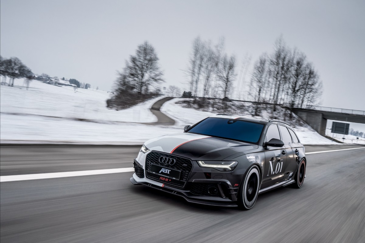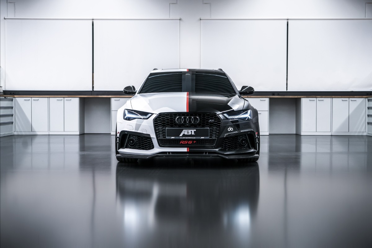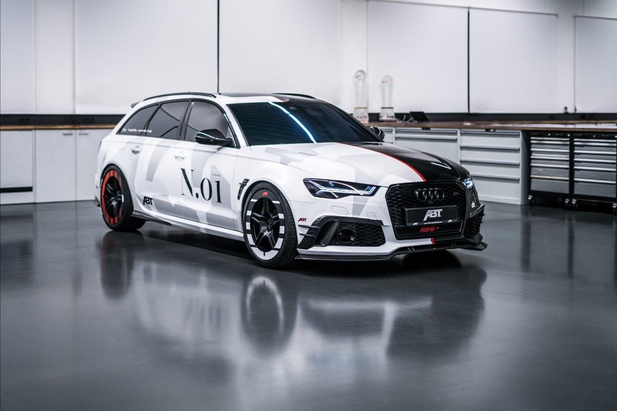 {1}Umbauen ließ Jon Olsson seinen neuen RS6 Avant bei den Jungs von Abt, die dem Vier-Liter-Biturbo 736 PS und 920 Nm entlocken und auf expliziten Kundenwunsch eine ganz besonders laute Abgasanlage verbaut haben. Außerdem wurden alle Scheiben getönt, das hauseigene Bodykit wurde verbaut, eine auffällige Schwarz-Weiß-Folierung macht den Kombi zum Hingucker und die ganz speziellen Felgen (ebenfalls foliert) runden das Optikpaket ab.
