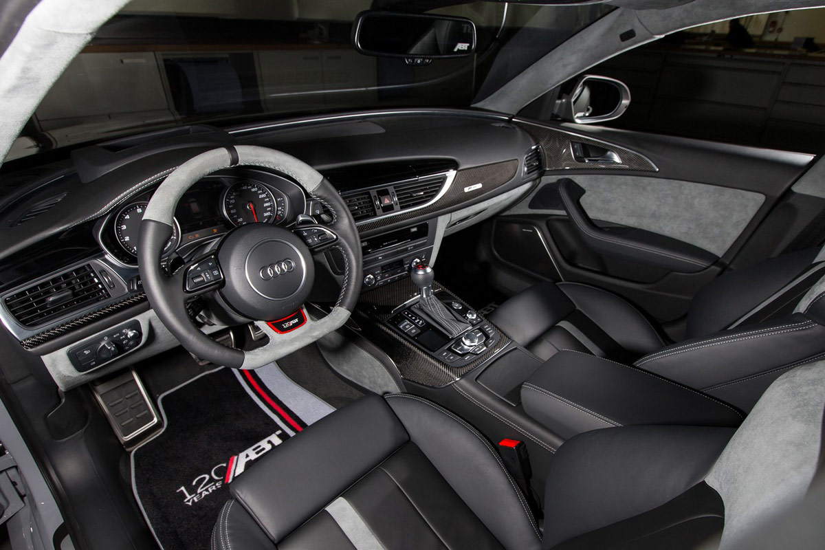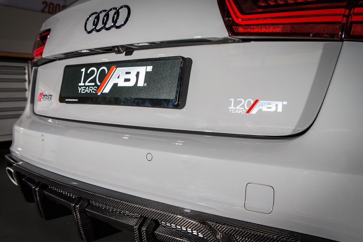 {1}Gerade einmal zwölf Exemplare will Abt von diesem speziellen, 730 PS und 920 Nm starken Power-Kombi, der einen Topspeed von 320 km/h an den Tag legt, fertigen. Von außen unterscheidet sich der Abt-RS6 durch allerlei Carbon-Teile sowie hauseigene 22-Zoll-Alus vom Serienmodell. Im Innenraum spendiert Abt dem Jubiläumsmodell jede Menge Alcantara und Carbon sowie eine Plakette mit dem Hinweis auf die geringe Stückzahl. Und wer die Tür öffnet, der bekommt die Hinweis auf die 120jährige Firmentradition sogar noch auf den Asphalt projiziert.