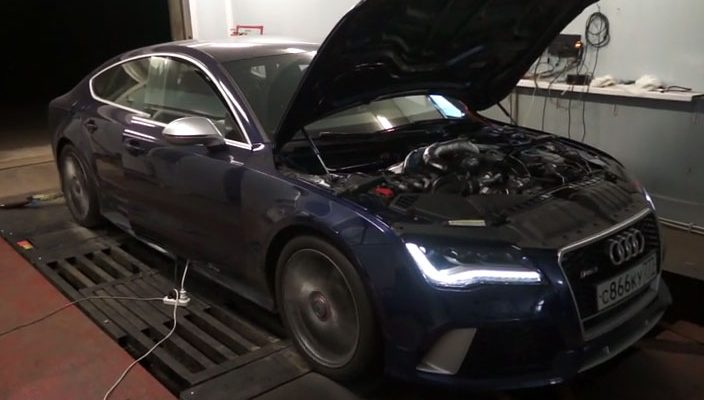 Das Tuner-Gespann aus Total Race und APR pusht den Vierliter-Biturbo-V8 dieses Audi RS7 Sportback auf über 1.000 PS. Abzüglich des durch den Antrieb verursachten Verlustes, kommen immerhin noch mehr als 940 PS an allen vier Rädern an. Alle Achtung. Vor allem, weil dem Motor zwar zwei neue Turbos, ein überarbeitetes Einspritzsystem und eine verbesserte Kühlung verpasst wurde, das Motor-Innere sowie das Getriebe (eine Achtgang-Automatik) aber unangetastet blieben. Vor allem angesichts des Drehmomentberges von über 1.200 Nm durchaus beachtlich. Doch es wird noch besser: Denn nach eigenen Angaben arbeiten Total Race und APR derzeit an einer weiteren Ausbaustufe (Stage 5), die dann mehr als 1.000 PS am Rad bringen soll.