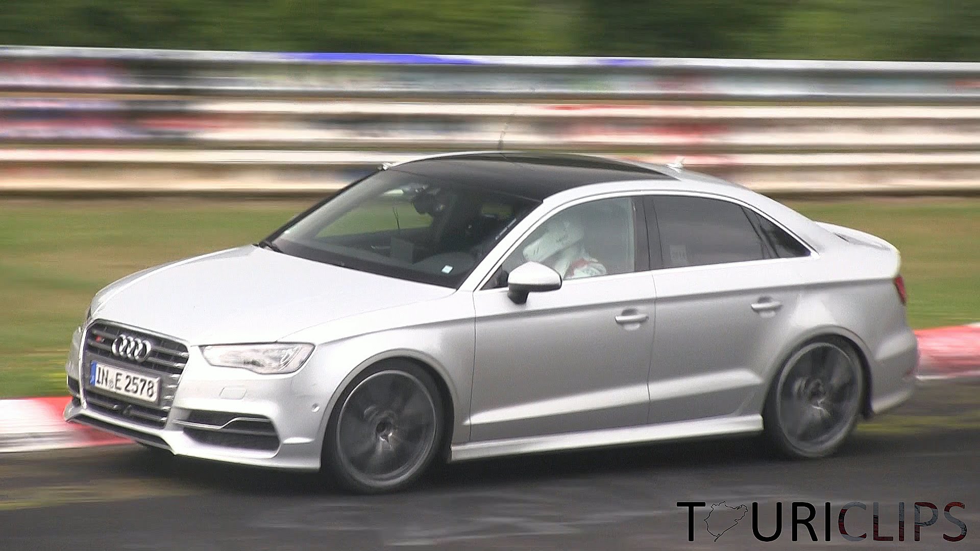 {werbung}Nanu, was haben wir denn da? Was testet Audi denn da auf der Nordschleife? Auf den ersten Blick sieht die kompakte Limousine aus wie der aktuelle S3. Doch das 300 PS starke Modell ist doch schon lange auf dem Markt. Eine mögliche Erklärung könnte eine Plus-Variante des bereits bekannten Modells sein, das die Lücke bis zum wahrscheinlich 360 PS starken RS3 schließen soll. Immerhin gibt es solche Plus-Ableger mit einem kleinen Power-Nachschlag bereits vom TT RS sowie schon bald wieder vom RS6 (dann mit 600 PS). Wir dürfen also gespannt sein, ob sich schon bald ein Audi S3 Plus (vielleicht mit 330 PS) in der Preisliste finden wird. Sollte dem so sein, dürfte klar sein, dass es den neuen RS3 in verschiedenen Karosserie-Varianten, also auch als Limousine geben wird. Gespannt sind wir aber vor allem auf die dreitürige Version, die wir bei der letzten Generation schmerzlich vermisst haben.