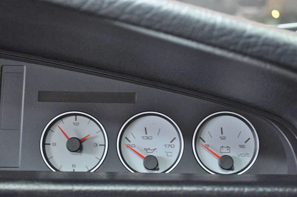 {1}Irgendwie normal für sportive Automobile aus dieser Zeit: der Fahrer kannte auch ohne Bordcomputer den aktuellen Betriebszustand seines Fahrzeugs. Im Audi S6 zeigten Analoginstrumente die Wasser-, und Öltemperatur, die Batteriespannung und (für ganz Harte) sogar die Urzeit an. Heute würde man sich schon wünschen, man könnte den Ölstand seines Fahrzeugs per Peilstab ablesen.