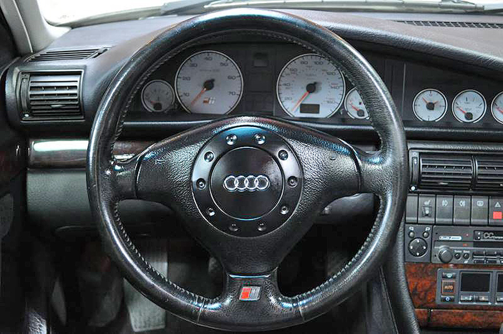 Qualitativ setzte der Audi S6 (und die gesamte C4-Baureihe) hingegen Maßstäbe, wie dieses US-Modell aus 1995 eindrucksvoll unter Beweis stellt. Die Lederqualität war imposant, die Türpappen massiv und die Druckschalter in der Mittelkonsole konnten selbst mit den dicksten Winterhandschuhen ohne Probleme bedient werden. Man könnte auch sagen: der Wagen wurde aus dem Vollen geschnitzt!