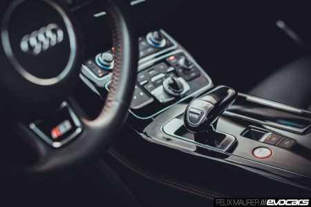 Im Innenraum empfängt den Audi-Routinier ansonsten ein bekanntes Ambiente, die wichtigen Bediensatelliten sind wie vor zwanzig Jahren noch an ihrem Platz, Klimaanlage und MMI samt ausfahrbarem Bildschirm sind nach kurzer Eingewöhnung schnell erschlossen. Glücklicherweise verzichtet Audi nicht wie andere Hersteller auf eine ordentliche Anzahl an Knöpfen, ebenso künden zu unserer Freude zwei analoge Rundinstrumente von Drehzahl und Geschwindigkeit. Lediglich der fummelige Wählhebel irritiert, ist dank schwarzer Lackierung nach der ersten Fahrt ohne Stoffhandschuhe sofort eingesaut und dazu so ziemlich das unsportlichste, was wir je in einem Auto angefasst haben. Dies soll sodann aber auch das letzte Mal Kritteln am Innenraum sein, an dem wir sonst nichts zum Aussetzen fanden: nachdem sich die Türen mit sanftem Schmatzen in Position gezogen haben, herrscht dank Doppelverglasung (samt abgedunkelten Scheiben für 930 Euro) Ruhe im S8, die Verarbeitung der vielen Kuhhäute ist an allen Stellen auf höchstem Niveau, lediglich – ok, einmal noch – die Koppelung von iPhone 7 und MMI verhielt sich sowohl per Bluetooth als auch über das Audi Media Interface ziemlich störrisch und verweigerte mehr als einmal ihren Dienst.