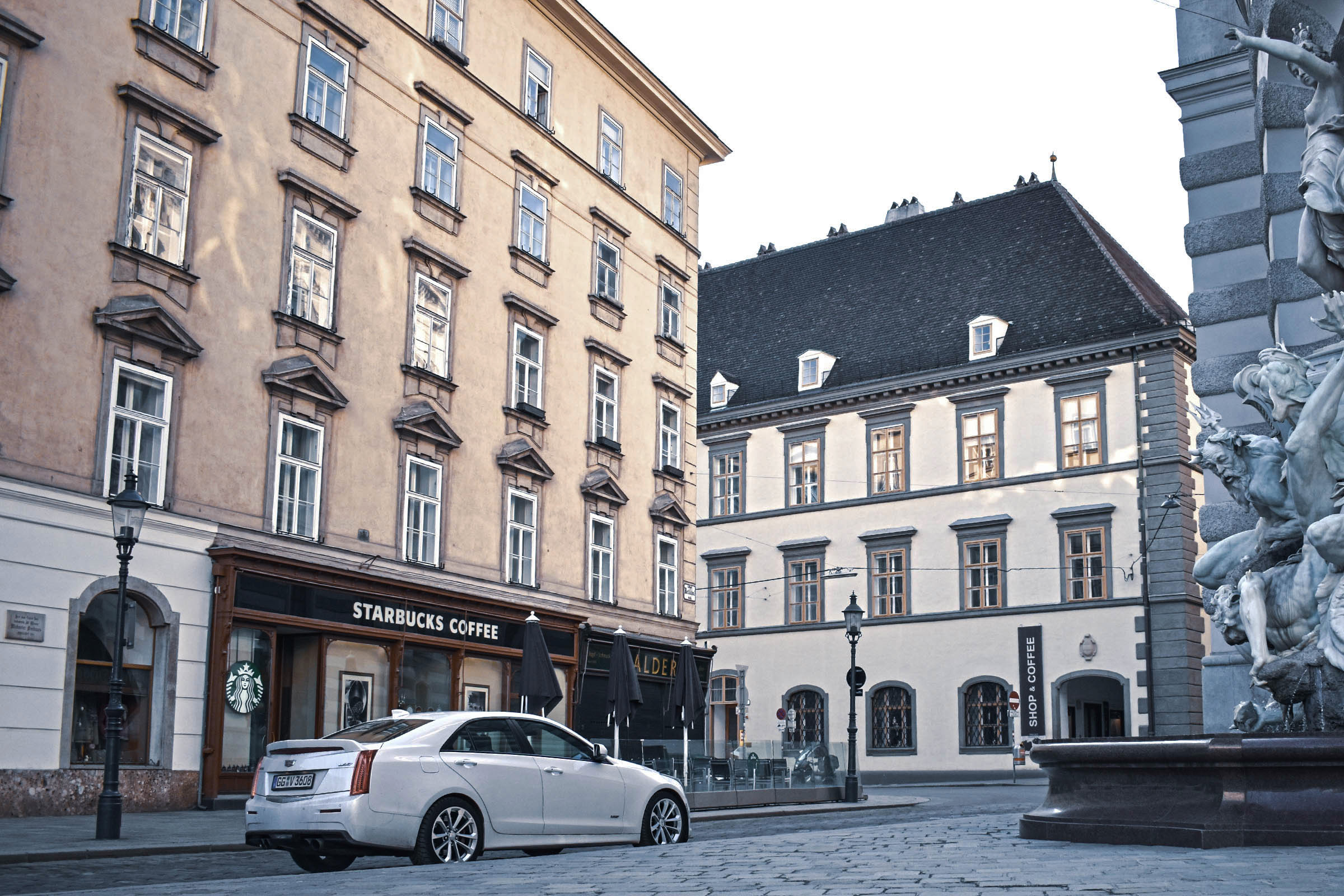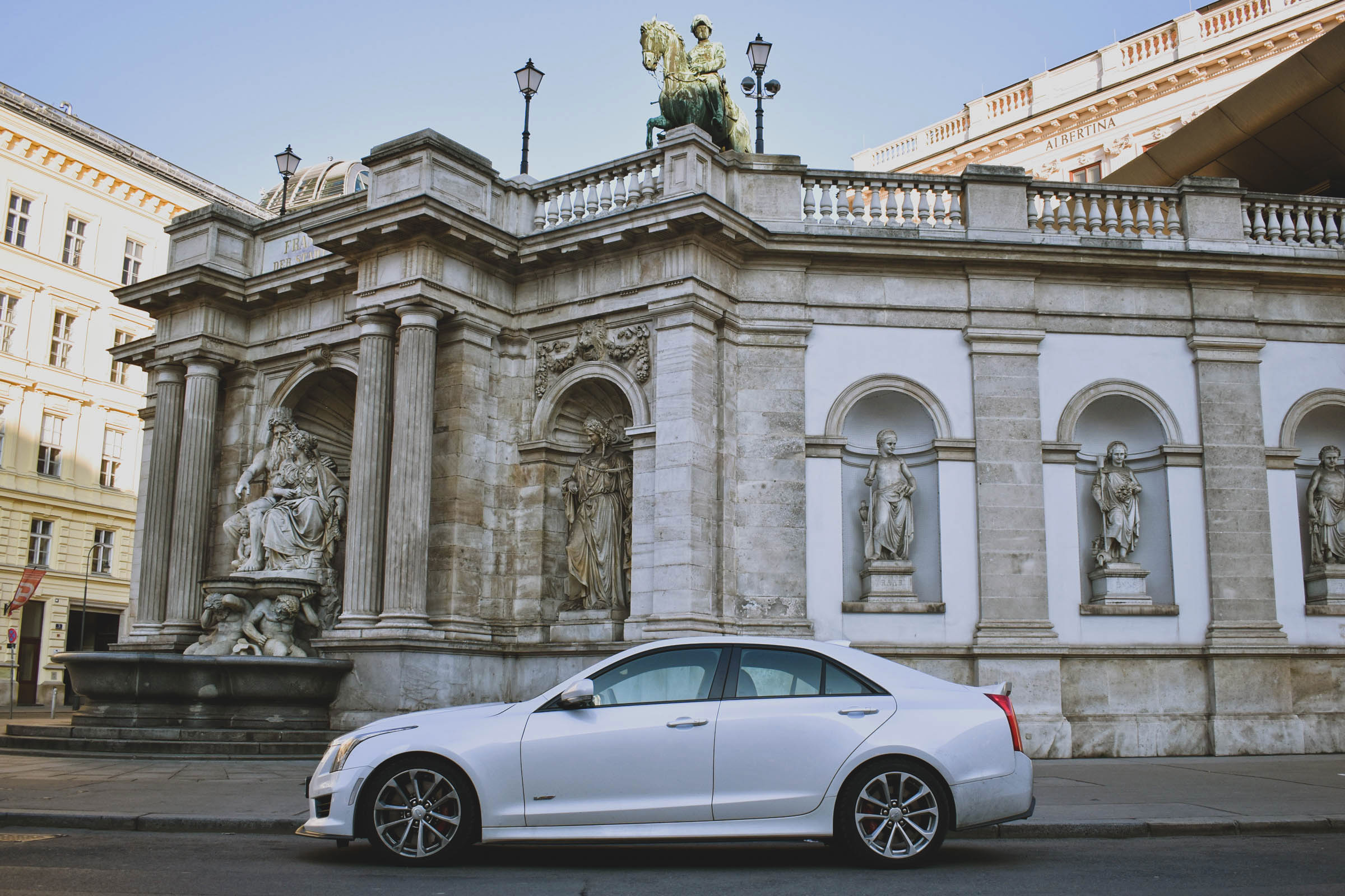 Wien, Ostermontag um 7:15 Uhr: ein warmer Frühlingstag steht uns bevor, der Himmel blau, die Sonne kurz vorm Aufgehen. Erste Lichtstrahlen erleuchten bereits die Hofburg, auf den Straßen um die Staatsoper nur wenig Betrieb. Ideale Bedingungen also um mit unserem Cadillac ATS-V die Kulturmetropole an der Donau zu erkunden und ein paar Fotos zu machen. Wir rücken den amerikanischen Sportwagen ins rechte Licht, parken von einer Seite zur anderen. Die wenigen Frühaufsteher blicken erstaunt auf den weißen Cadillac, die örtliche Polizei fährt Kreise und mustert Fahrer nebst Auto ohne anzuhalten.