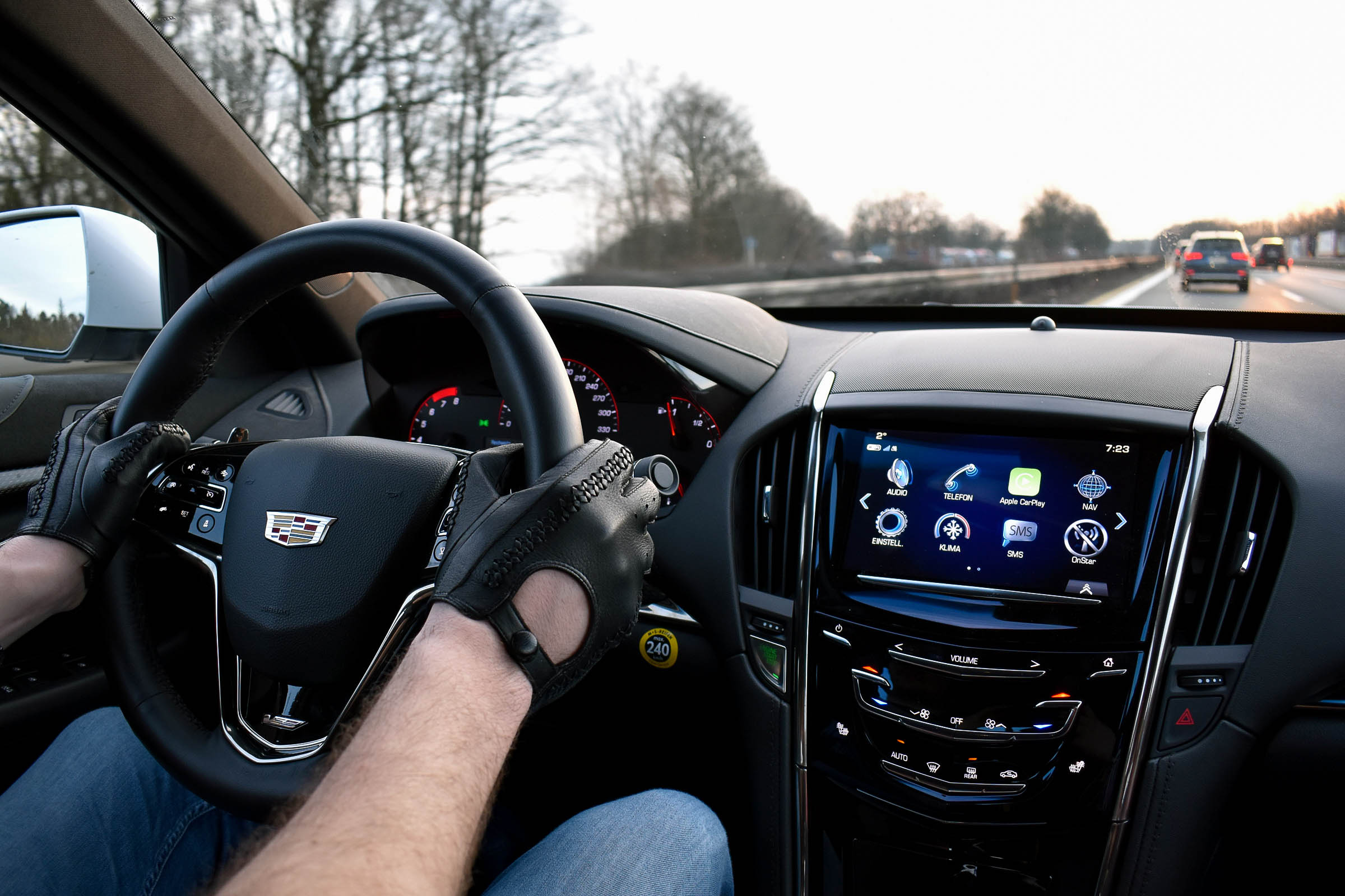{1} Zum Schluss verlieren wir noch ein paar Wörter über die Bedienung der Cadillac User Experience (CUE). Kurzum: sie gefällt immer mehr – was wohl auch daran liegen mag, dass wir uns nach dem x-ten Cadillac an das System gewöhnt haben. Die Spracheingabe funktioniert recht passabel, die Kopplung mit der Head-Up-Unit ist bei den Amerikanern seit je her eine Klasse für sich und selbst die Bedienung des hochglänzenden Interface gestaltet sich ohne große Hürden. Einzig die optische Darstellung der Menüs und der Straßenkarte ist nicht mehr Stand der Technik – das System ist aber mittlerweile auch einige Jahre auf dem Markt.