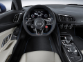 Ebenfalls weiterentwickelt wurde das Fahrwerk, das im R8 V10 plus ein strafferes Setup bietet als im R8 V10. Serienmäßig stehen beide Modelle auf 19-Zoll-Rädern, optional sind erstmals auch 20-Zöller erhältlich. Ferner sind für beide das elektromagnetische Fahrwerk magnetic ride und die Dynamiklenkung, die sich auf die variabel an die gefahrene Geschwindigkeit anpasst und über Audis drive select (vier Modi: comfort, auto, dynamic, individual) steuerbar ist. Serienmäßig ist eine neu entwickelte elektro-mechanische Servolenkung an Bord. Eine an Ferrari angelehnte Option ist der Performance-Modus (Serie beim V10 plus, optional für den V10), der mittels Drehknopf am Lenkrad das Handling auf trockene („dry“), nasse („wet“) oder winterliche Verhältnisse („snow“) einstellbar macht.