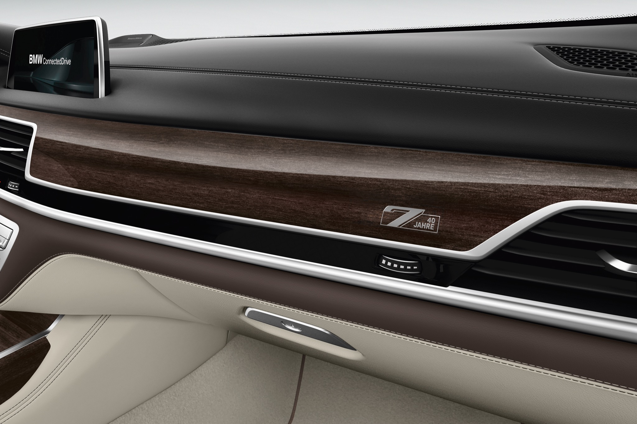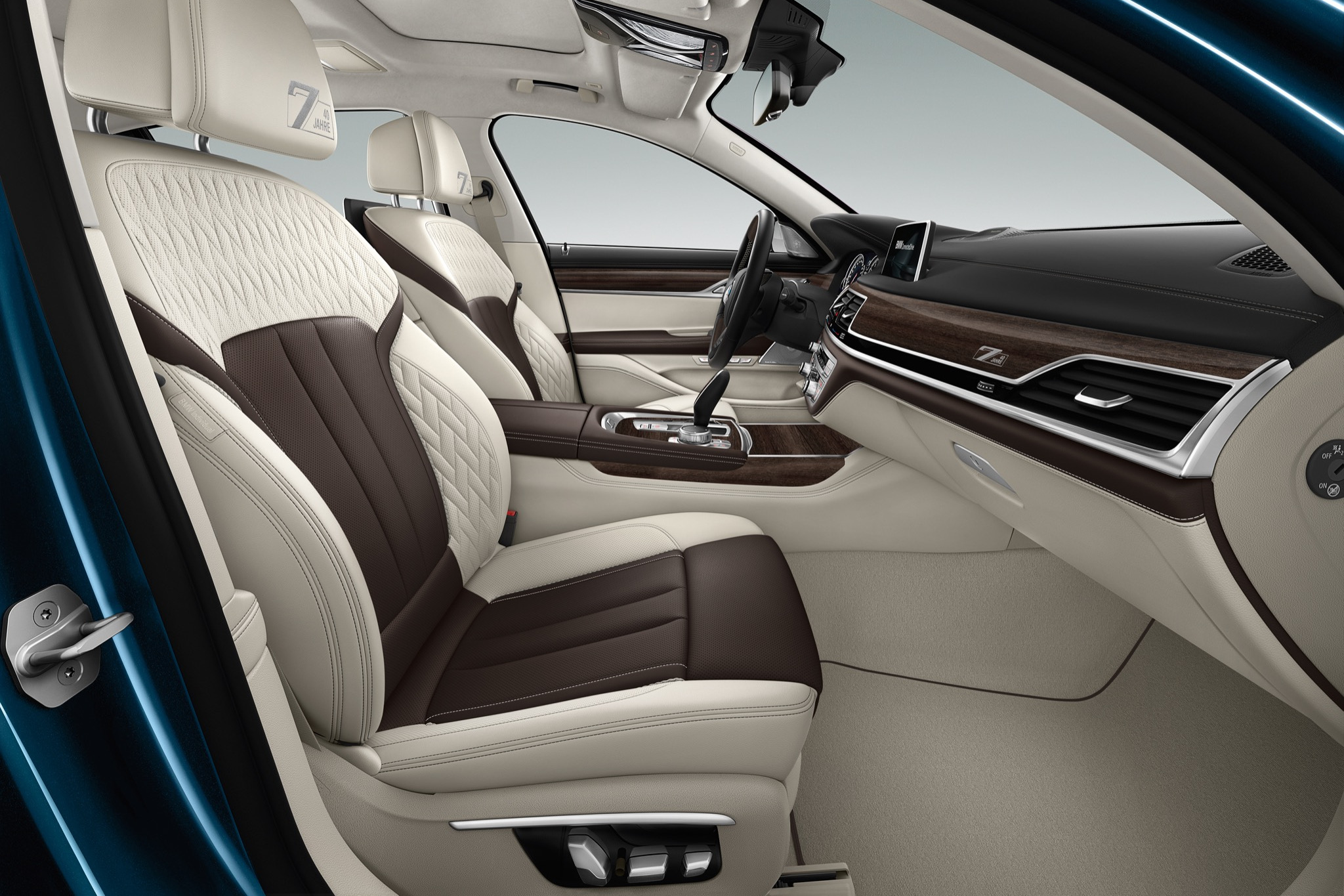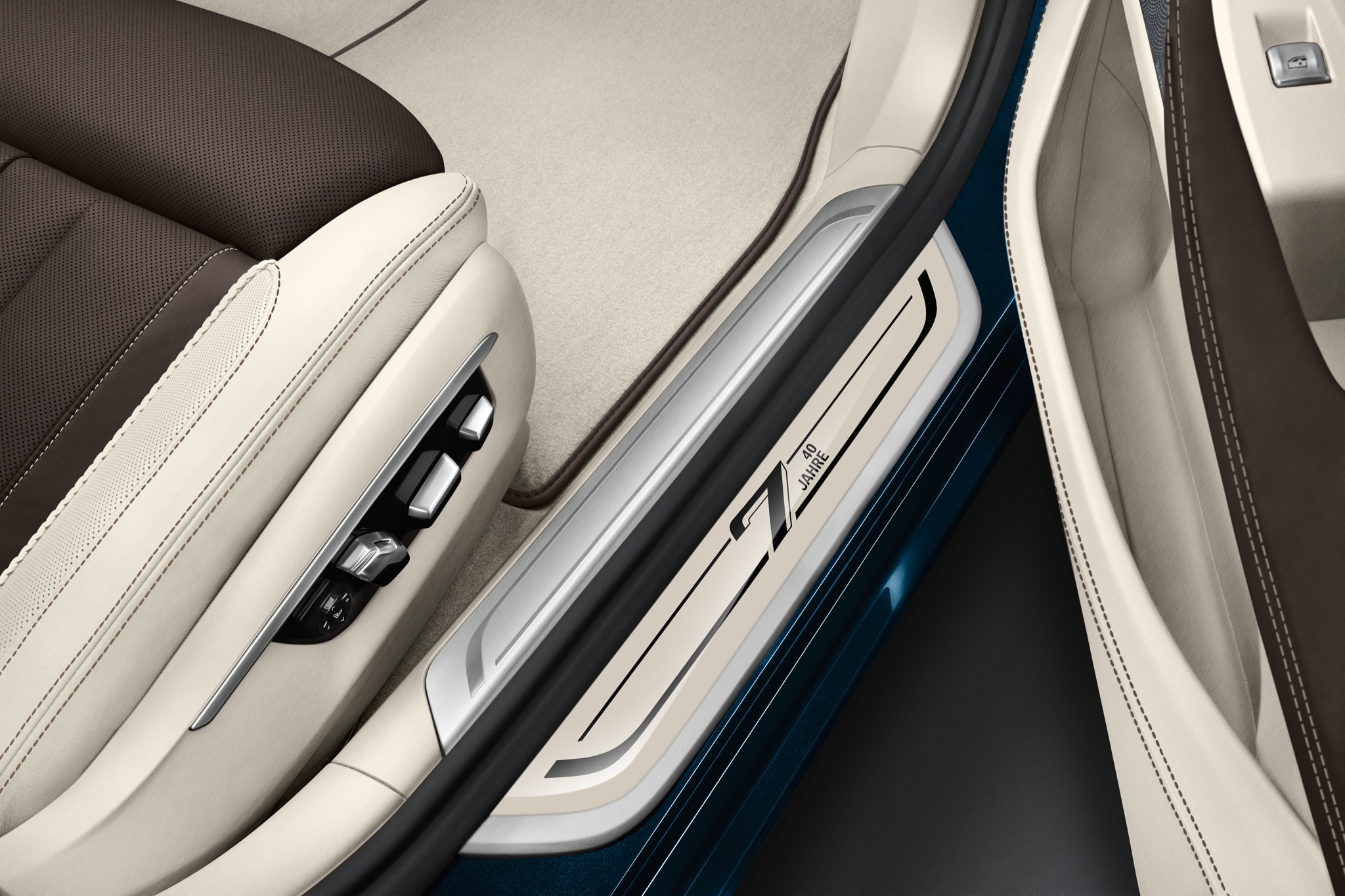 {1}Und jetzt, zum Sommer des Jahres 2017, besinnt sich BMW mit dem 7er Edition 40 Jahre zurück auf die Wurzeln seiner Luxusklasse. Das Sondermodell ist nicht auf einen speziellen Motor fokussiert, sondern wird in allen aktuell erhältlichen Antriebsvarianten angeboten. Dafür sind die Stückzahlen begrenzt: es sollen lediglich 200 Exemplare entstehen. Für diese stehen zwei Außenfarben zur Verfügung. Der geneigte Kunde hat die Wahl zwischen Frozen Silver Metallic und Petrol Mica Metallic. Standardmäßig wird das M-Exterieur-Paket sowie die Hochglanz Shadow Line verbaut. Für Bodenkontakt sorgen 20-Zoll große Individual-Aluminiumfelgen.