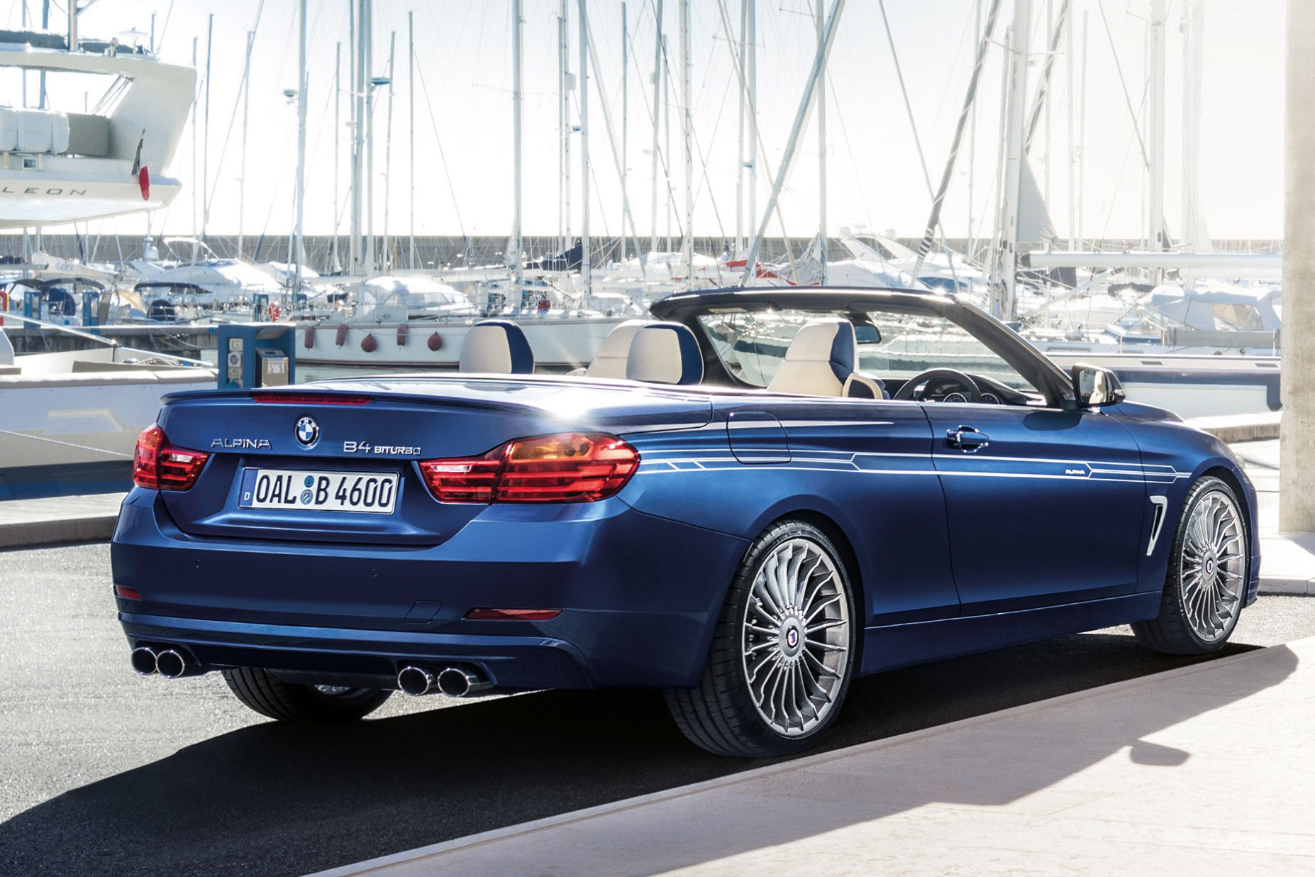 Auch beim B4 kommt ein aufgeladener Dreiliter-Reihensechser zum Einsatz, allerdings wurde das Basistriebwerk deutlich modifiziert und nun verrichten hier zwei Turbos ihr Werk – wie beim Vorgängermotor (N54). In der Summe stellt das Aggregat nun 410 PS bereit und wuchtet von 3.000 bis 4.000 U/min muntere 600 Newtonmeter auf die Welle. Im ebenfalls angebotenen Alpina B4 Coupé reicht diese Leistung für einen Sprint von 4,2 Sekunden auf Tempo 100, das schwerere Cabrio benötigt für diese Disziplin 4,5 Sekunden. Den Topspeed gibt Alpina mit 301 km/h an.