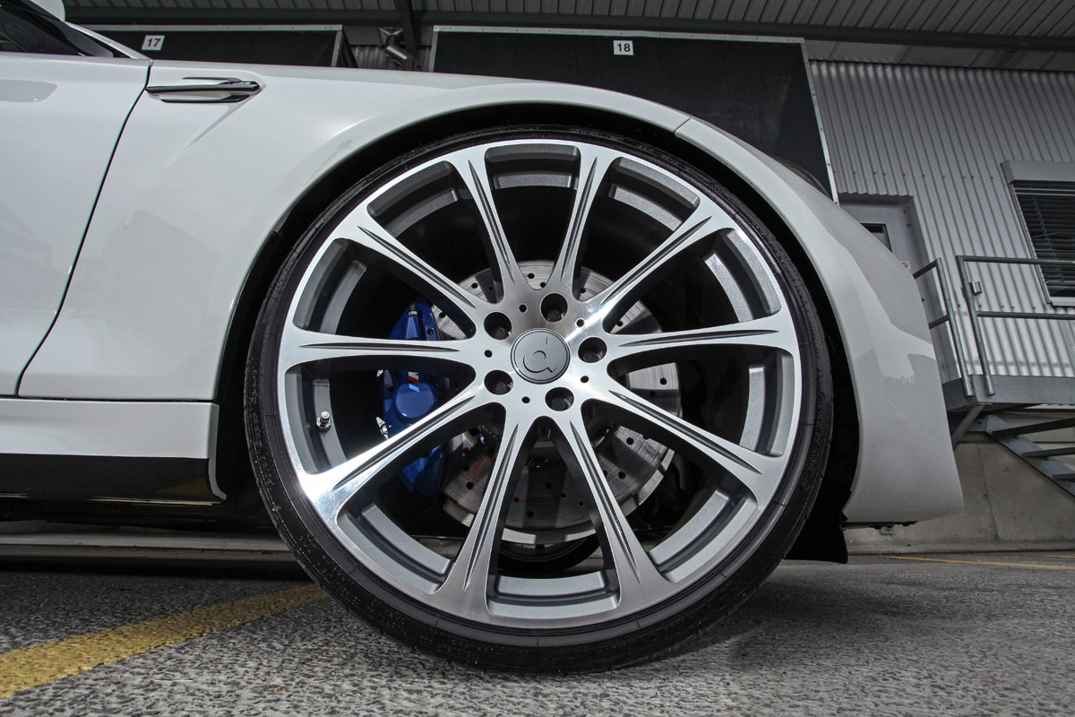 Neben dem Engine-Swap verbaut der Tuner auch noch ein in Zug- und Druckstufe verstellbares Gewindefahrwerk, eine deutlich größer dimensionierte Bremse mit 400 Millimeter messenden Scheiben und acht Kolben (ob vorne UND hinten, wird nicht sofort ersichtlich) sowie eine Edelstahl-Abgasanlage.