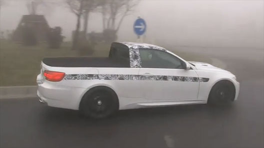 Am 1. April wird sich wohl zeigen, ob der gesichtete M3 Pickup tatsächlich als Aprilscherz gedacht war. Zumindest sind für diesen Tag einige Enthüllungen angekündigt.Vor einigen Tagen sorgte ein kaum getarnter Erlkönig rings um die Nordschleife für einiges Aufsehen. Kein Wunder, handelte es ich doch um einen BMW M3 Pickup. Schnell war klar, dass es sich hierbei sicher um kein späteres Serienmodell handeln würde. Doch was sahen wir dann? Eine Erklärung könnte der nahende 1. April geben, denn für diesen Tag hat BMW angeblich einige Neuheiten in Aussicht gestellt. Sollte es sich beim dem allem Anschein nach sehr professionell umgebauten BMW M3 Coupé (4,0-Liter-V8, 420 PS) also tatsächlich um einen sicherlich sehr teuren Aprilscherz handeln. Haben die Bayern tatsächlich viel Geld und noch mehr Arbeitszeit in den Bau eines Scherzartikels gesteckt? Noch steht die Antwort aus.