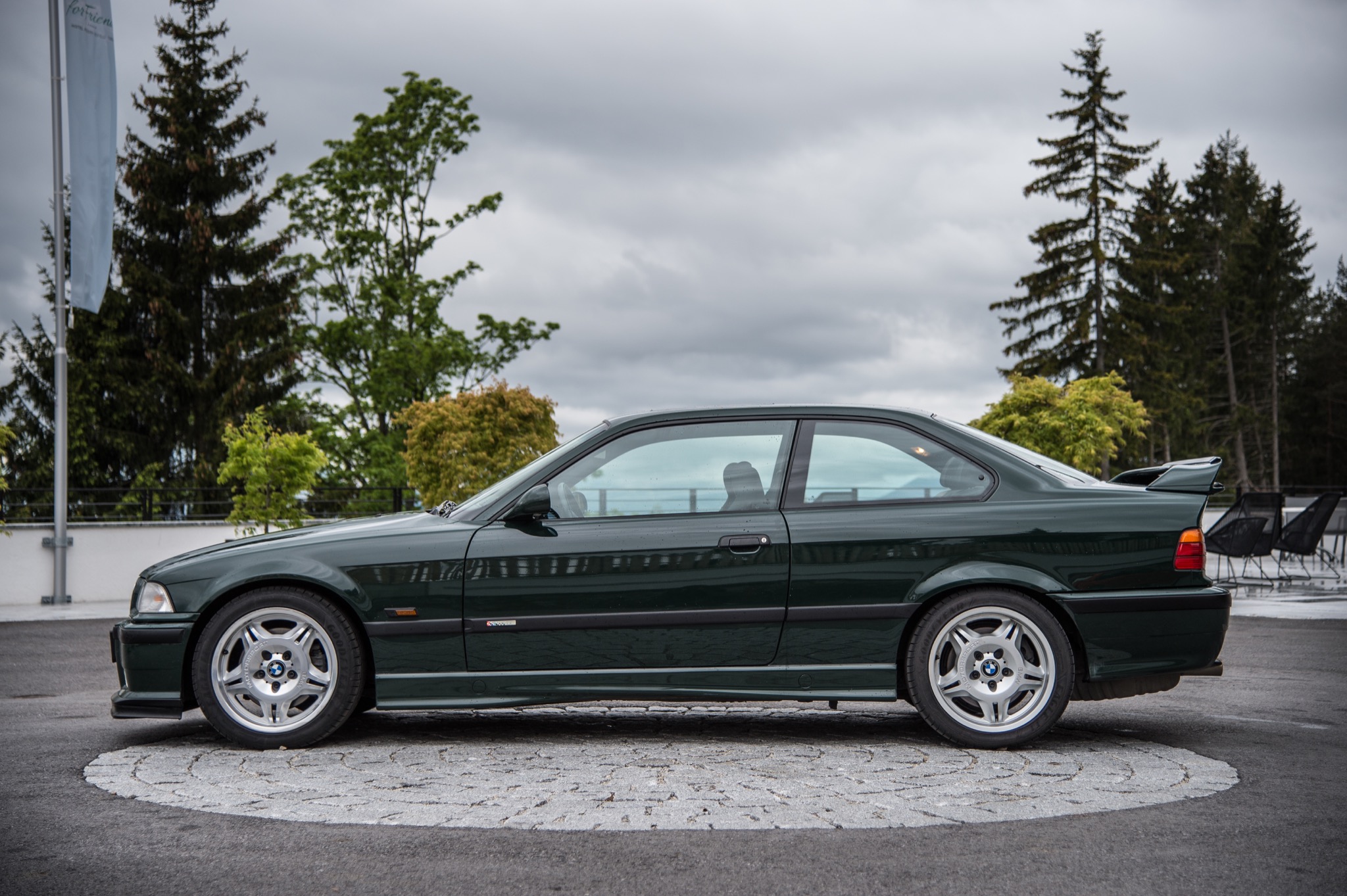 Wo wir gerade von Serie sprechen: ihn hier gab es in Serie, ein echter Traum-M3 in british-racing-green (nur einer der 356 Stück wurde in silber ausgeliefert), das Homologationsmodell für die FIA-GT Rennserie. Der M3 GT wurde lediglich von Ende 1994 bis Mitte 1995 gebaut, hatte einen leistungsgesteigerten Dreilitermotor (295 PS) mit Merkmalen des späteren 3,2-Liter S50-B32-Motors unter der Haube und wartete auch abseits der Technik mit ein paar exklusiven Schmankerln auf: die Türen sind aus Aluminium, der Heckspoiler obligatorisch, im Innenraum gab es für GT-Kunden eine Kombination aus mexicogrünem Leder und schwarzem Alcantara. M3 GT gehören heute zu den begehrtesten E36, auch weil es das einzige echte Sondermodell des M3 für den deutschen Markt war. Gute Exemplare erzielen heute bereits Preise von rund 60.000 Euro, Tendenz steigend.