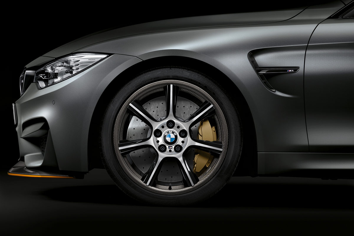 Die mit 12.500 Euro nicht eben billigen Felgen haben Felgenbett aus Sichtcarbon, messen an der Vorderachse 9,5Jx19 Zoll und hinten 10,5Jx20 Zoll. Besohlt sind sie mit speziell auf den BMW M4 GTS abgestimmten Michelin Pilot Sport Cup 2-Reifen in den Dimensionen 265/35 ZR19 vorn und 285/30 ZR20 hinten.