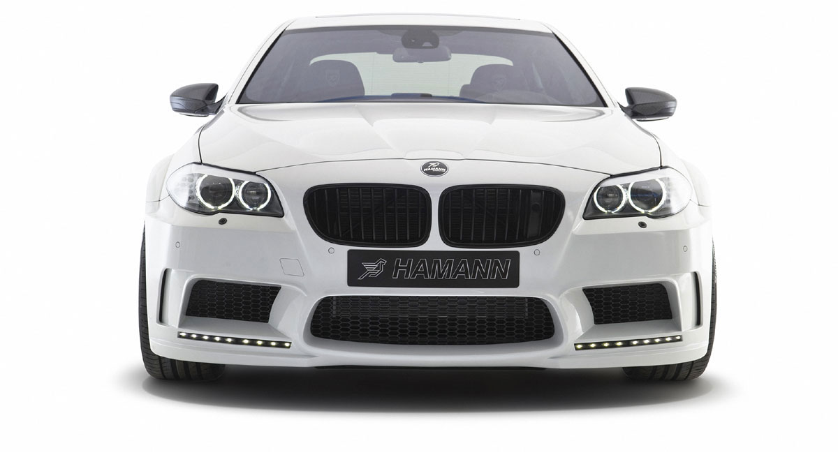 Optisch kann sich der aufgemöbelte BMW schon jetzt mit dem brutalen Mercedes von Brabus anlegen: Breitbau-Bodykit (vorne 25 hinten 30 Millimeter mehr), neue Frontschürzen, Seitenschweller, Dach- und Heckspoiler geben den Hamann-M5 sofort zu erkennen. Zusätzlich verbaut der Tuner 21-Zoll-Felgen (vorne mit 265er, hinten mit 325er Bereifung), sowie neue Federn, die den Wagen um 30 Millimeter näher an den Asphalt bringen. Bestaunt werden kann der derartig optisch gepushte BMW M5 erstmals auf dem Auto Salon in Genf (8. bis 18. März).