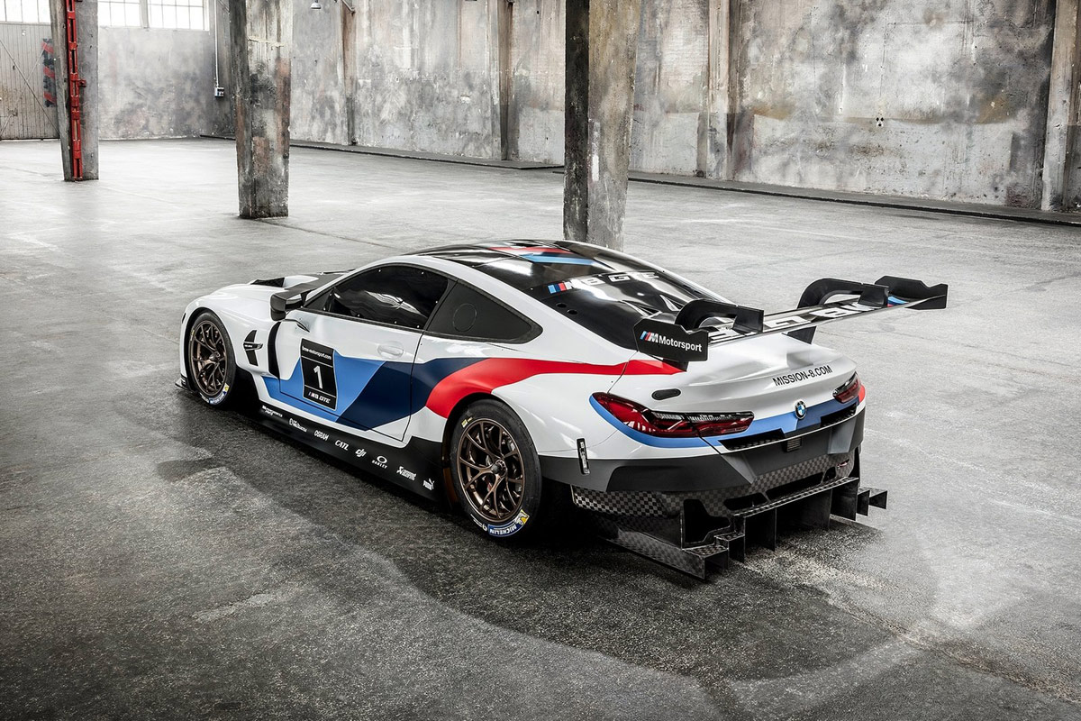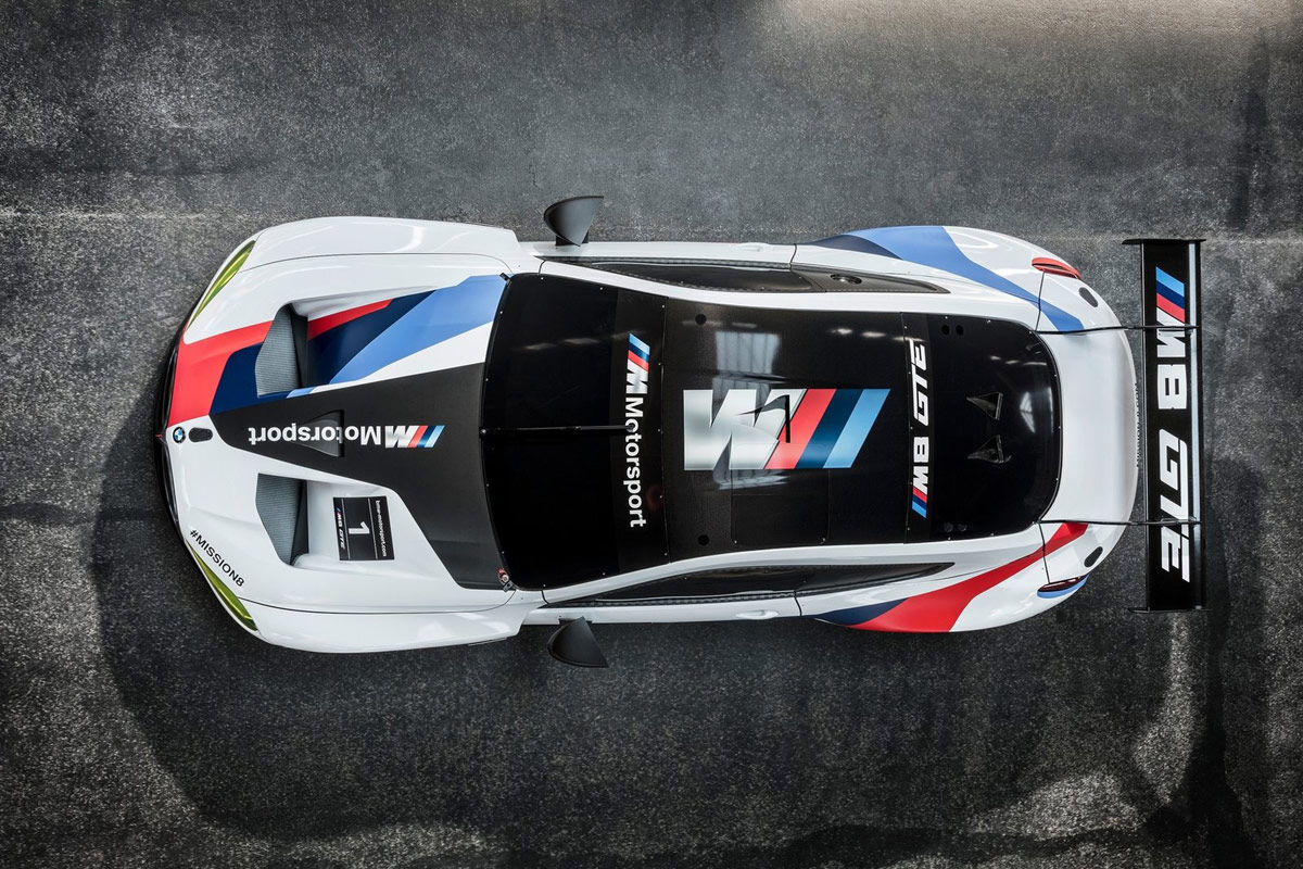Beim BMW M8 GTE arbeiten Motorsport- und Serienentwickler eng zusammen. So spielt der konsequente Leichtbau auch in der Entwicklung des neuen GT-Sportwagens eine entscheidende Rolle. Durch den umfangreichen Einsatz ultraleichter CFK-Komponenten wird eine deutliche Gewichtsreduktion erreicht. Der BMW M8 GTE wiegt bei einer Länge von 4.980 mm und einer Breite von 2.046 mm lediglich ca. 1.220 Kilogramm. Beim Design zeigt der BMW M8 GTE ebenfalls seine enge Verwandtschaft mit dem BMW 8er Coupé und dem BMW M8. Sie wird unter anderem bei der gemeinsamen Dachlinie sowie bei der Gestaltung der Front- und Heckleuchten deutlich.