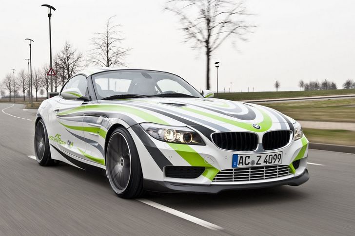 Dieselmotoren gehören nicht in sportliche Coupés und Roadster – so die einhellige Meinung verbohrter Sportwagen-Fans und –Fahrer. Doch schon oft haben Großserienhersteller bei Motorsportveranstaltungen bewiesen, dass die nagelnden Renner mithalten und sogar gewinnen können. „Na also!“ meint man da die Jungs von AC Schnitzer rufen hören, die mit ihrem 99d für Aufsehen sorgen. Auf Basis eines BMW Z4 zeigt der knallig folierte Zweisitzer aus Aachen, was für einen strammen Diesel-Renner man aus dem Münchener Coupé machen kann. Vor allem zwei Kernpunkte gilt es beim 99d zu beachten. Da wäre zum einen das um 230 Kilogramm abgespeckte Kampfgewicht des Zweisitzers und zum anderen das auf 190 PS gesteigerte Diesel-Aggregat aus dem BMW 320d Efficient Dynamics unter der Haube.