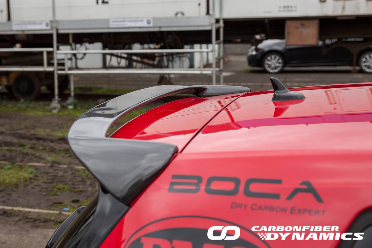Ebenfalls im Angebot finden sich verschiedene Motorhauben von Boca Carbon (OEM- der Race-Look) aus Carbon/GFK oder Carbon/Kevlar sowie ein beachtlicher Dachkantenspoiler, der den Look des VW Golf R400 von CFD abrundet.