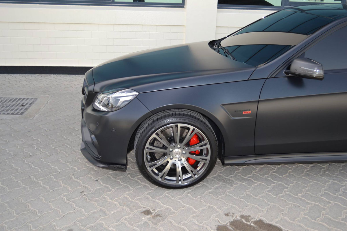Angetrieben wird das dicke Ding vom aufgeladenen V8 des E 63 AMG, der allerdings einen Hubraumzuwachs auf etwas über 5,9 Liter vorzuweisen hat. Desweiteren wurde das Aufladungssystem des Achtzylinder-Vierventilers aufgerüstet: Eine komplette Neuentwicklung sollen die Luftansaugung und die beiden Turbolader mit größerer Verdichtereinheit und Spezialkrümmer sein. Passend dazu wurde ein neues Ansaugmodul inkl. Luftfiltergehäuse mit vergrößertem Ansaugquerschnitt entwickelt. Alle weiteren Modifikationen haben wir hier für Euch aufgelistet.