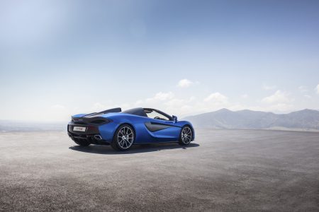 {1}Und da die Briten generell keine Kompromisse machen, muss man solche auch beim Kauf des derzeit günstigsten offenen McLaren nicht erwarten. Im Gegenteil: dank der ohnehin schon sehr steifen Konstruktion des Carbon-Monocoques vom Coupé wiegt der Spider lediglich 46 Kilogramm mehr als die geschlossene Variante. Der Heckspoiler wurde um 12 Millimeter vergrößert, um die veränderte Karosserieform über dem Mittelmotor auszugleichen. Der V8-Biturbo mit 3,8 Litern Hubraum leistet wie gehabt 570 PS und 600 Newtonmeter Drehmoment. Die Power wird über ein Siebengang-Doppelkupplungsgetriebe ausschließlich an die Hinterräder geleitet. Von 0 auf 100 Km/h beschleunigt der Spider genauso schnell wie das Coupé: 3,2 Sekunden. Die Höchstgeschwindigkeit beträgt – abermals wie die des Coupés – 328 Km/h. Nur mit geöffnetem Dach muss man auf die letzten 13 Stundenkilometer verzichten – allzu sehr schmerzen dürfte das jedoch nicht.