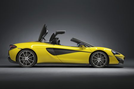 Wie bei den größeren und stärkeren Modellen auch vertraut man in Woking auf ein zweiteiliges Hardtop aus Verbundwerkstoff, das auf Knopfdruck elektrisch hinter die Fahrerkanzel fährt. Der Tanz der Paneele mit der Verdeckkastenabdeckung soll in 15 Sekunden abgeschlossen sein und kann bis zu einer Geschwindigkeit von 40 Km/h vollführt werden. Geschlossen wirkt der 570S Spider daher in seiner Seitenansicht wie ein Coupé. Offen zeigt sich jedoch: die McLaren mit dem Beinamen Spider waren doch bisher stets die schönsten.