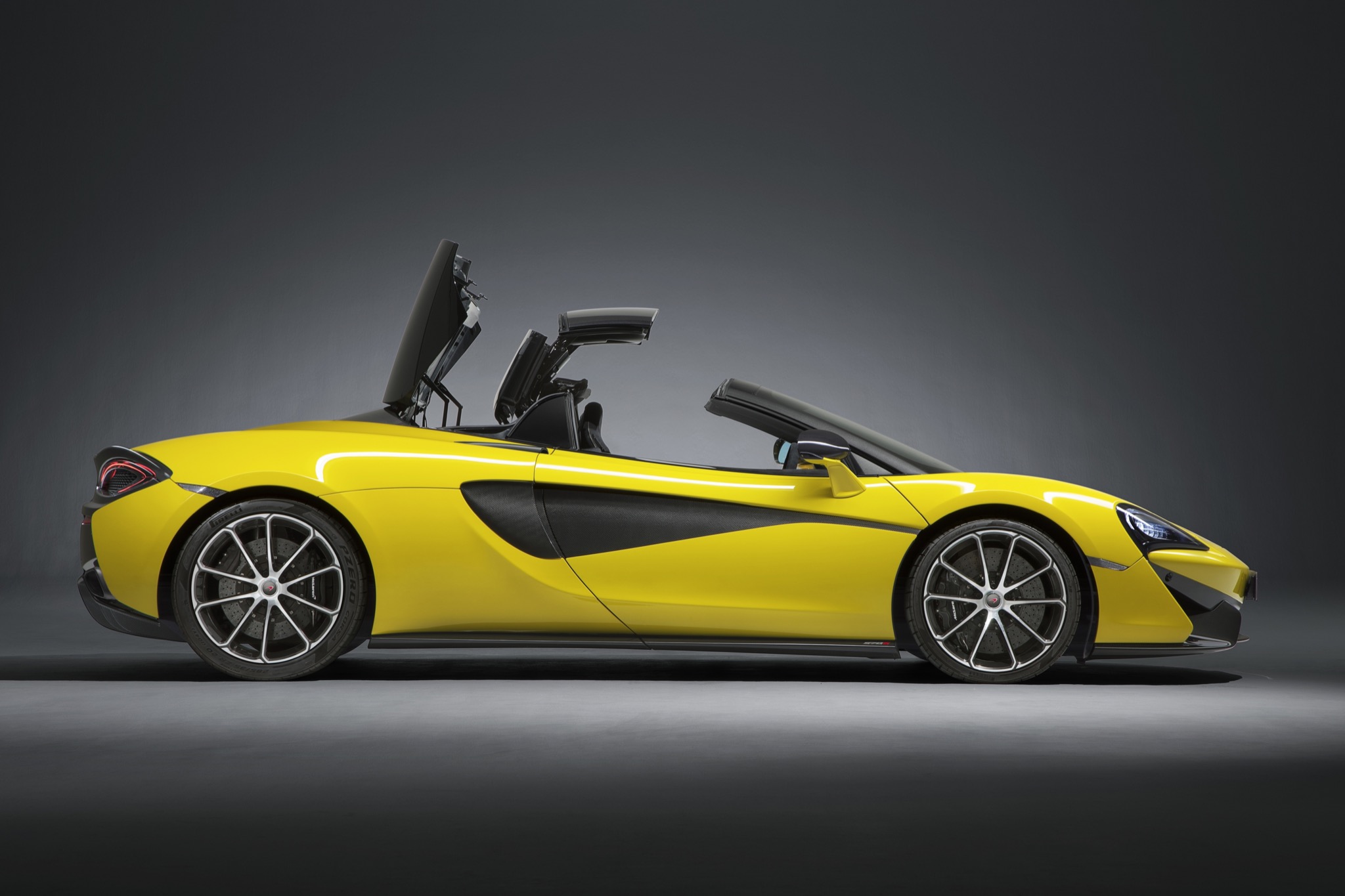 {1}Und da die Briten generell keine Kompromisse machen, muss man solche auch beim Kauf des derzeit günstigsten offenen McLaren nicht erwarten. Im Gegenteil: dank der ohnehin schon sehr steifen Konstruktion des Carbon-Monocoques vom Coupé wiegt der Spider lediglich 46 Kilogramm mehr als die geschlossene Variante. Der Heckspoiler wurde um 12 Millimeter vergrößert, um die veränderte Karosserieform über dem Mittelmotor auszugleichen. Der V8-Biturbo mit 3,8 Litern Hubraum leistet wie gehabt 570 PS und 600 Newtonmeter Drehmoment. Die Power wird über ein Siebengang-Doppelkupplungsgetriebe ausschließlich an die Hinterräder geleitet. Von 0 auf 100 Km/h beschleunigt der Spider genauso schnell wie das Coupé: 3,2 Sekunden. Die Höchstgeschwindigkeit beträgt – abermals wie die des Coupés – 328 Km/h. Nur mit geöffnetem Dach muss man auf die letzten 13 Stundenkilometer verzichten – allzu sehr schmerzen dürfte das jedoch nicht.