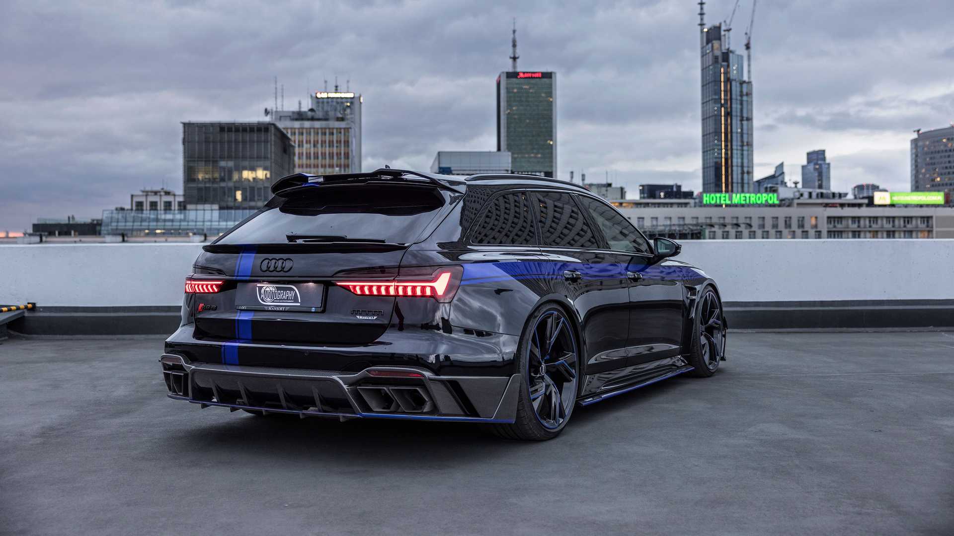 Nach den Anpassungen wuchtet der Vierliter-Biturbo-V8 feine 820 PS sowie 1.167 Newtonmeter Drehmoment auf die Welle. Diese Leistung soll reichen, um den über zwei Tonnen schweren Kombi in 2,9 Sekunden auf 100 km/h, in 9,1 Sekunden auf 200 km/h und munter weiter bis 330 km/h Topspeed stürmen zu lassen. Zum Vergleich: Im Serien-RS6 benötigt man 3,6 Sekunden für den Standardsprint und Schluss ist bei abgeregelten 250 km/h.