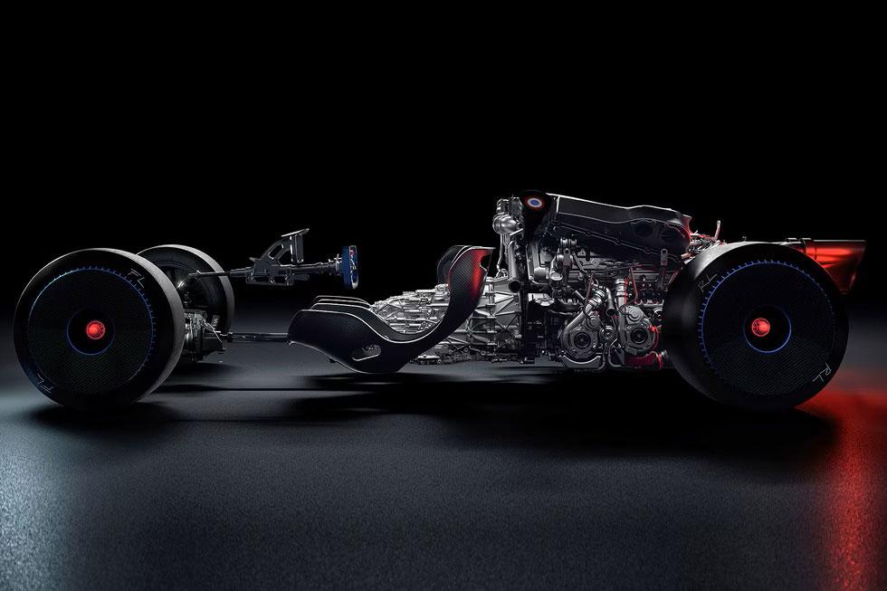 Theoretisch basiert der Bugatti Bolide auf dem Bugatti Chiron, doch blieb so gut wie kein Bauteil unangetastet. Alleine der Gewichtsverlust von unfassbaren 545 Kilogramm spricht hier eine deutliche Sprache.