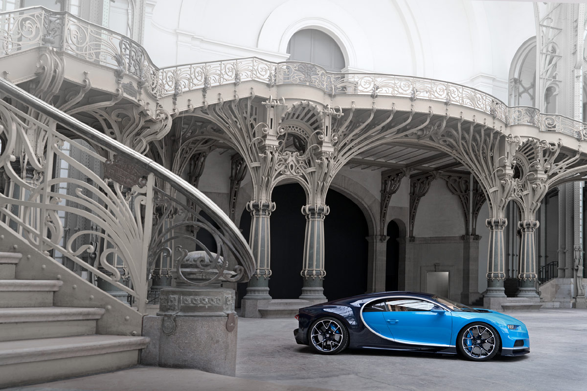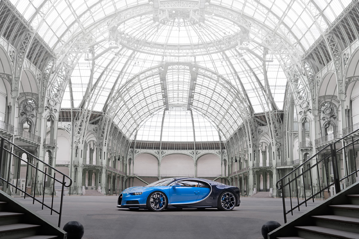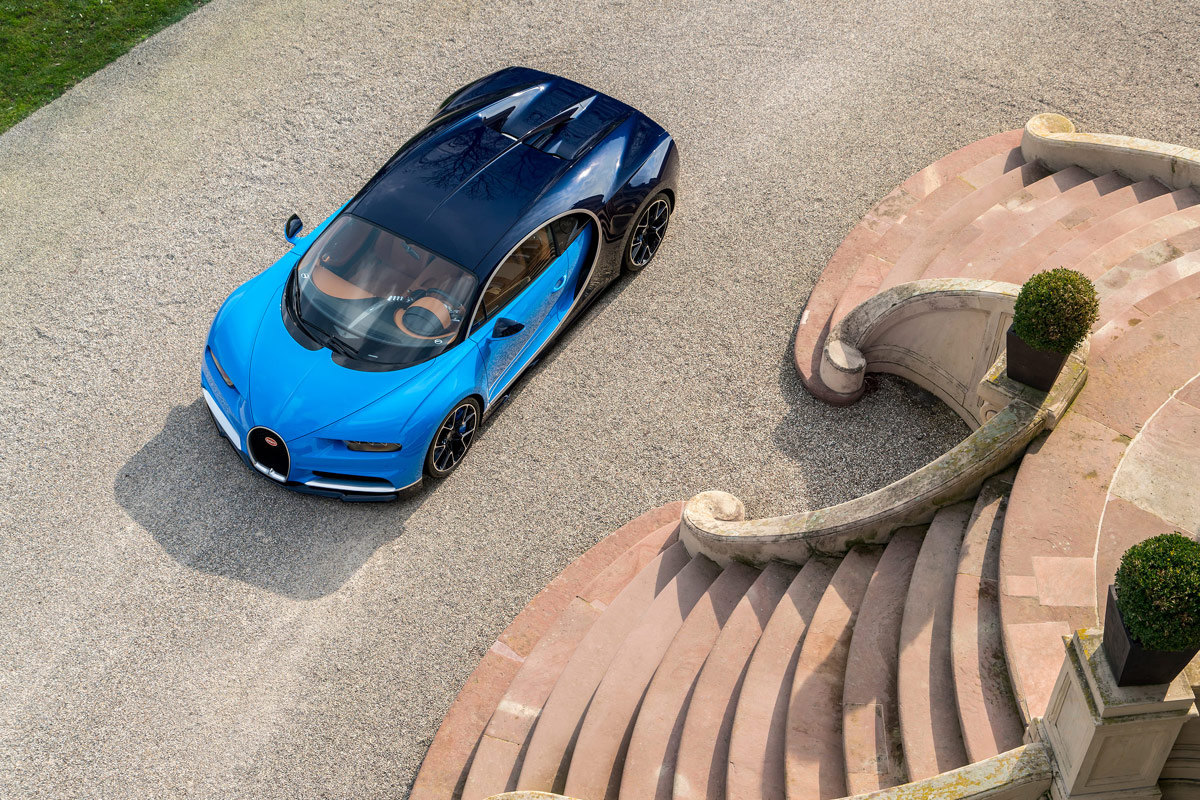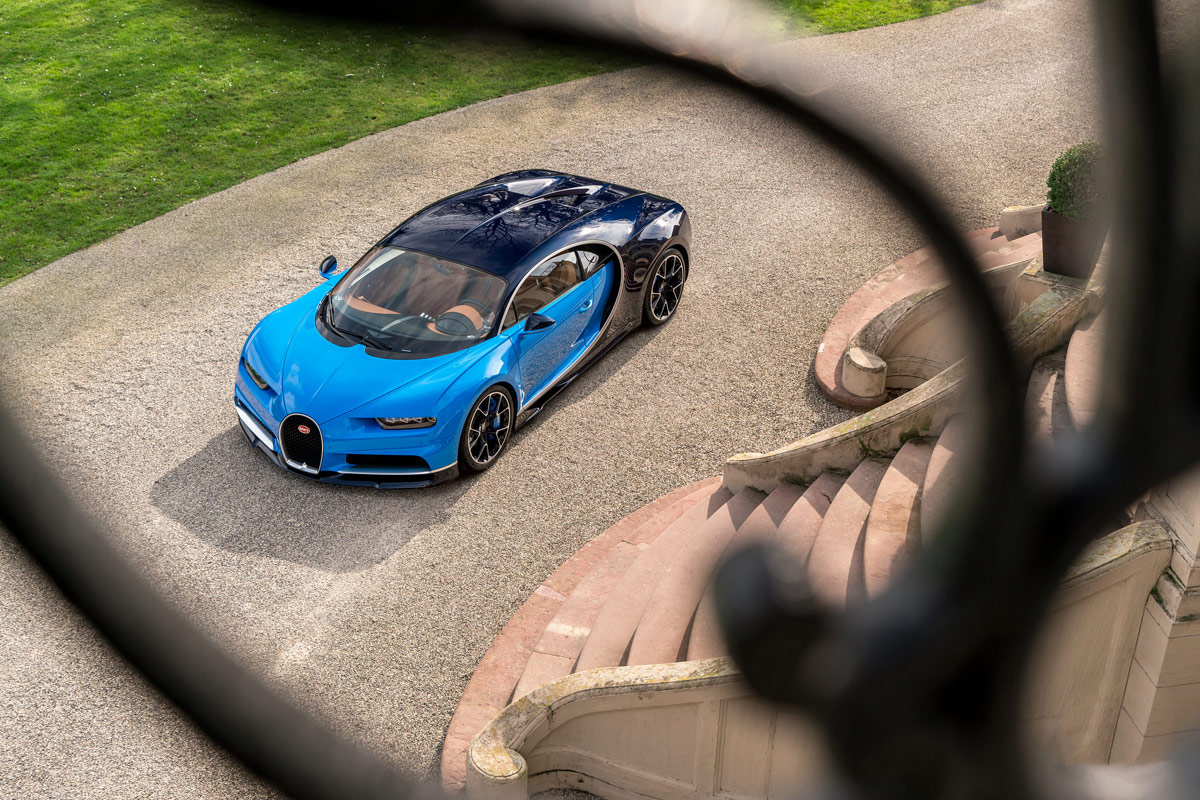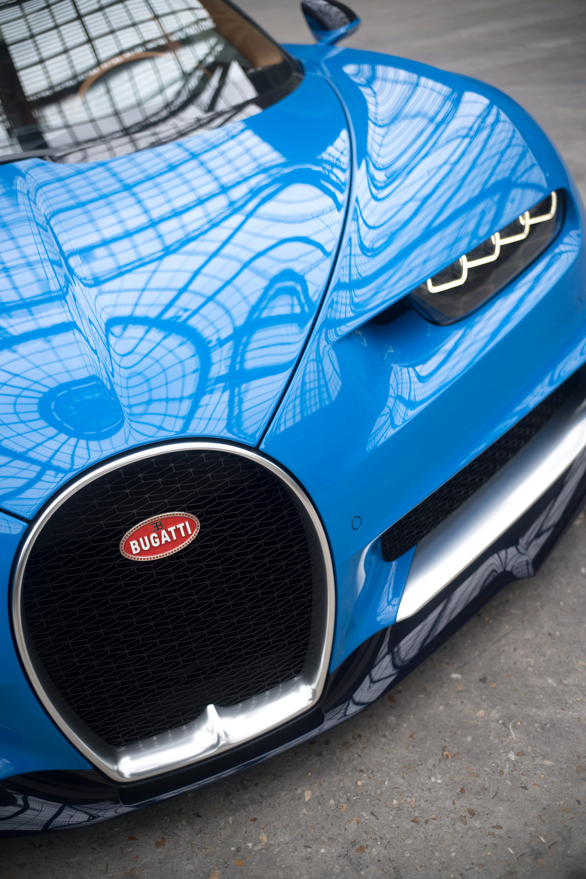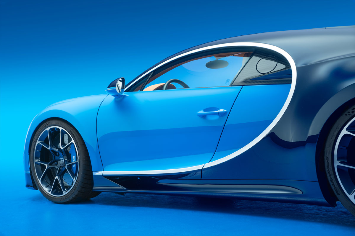 Klassisches Merkmal der Bugatti-DNA ist die Zweifarbigkeit. Die Farbgrenze verläuft bei Bugatti allerdings nicht über Bauteile hinweg, sondern auf sehr technische Art und Weise an Bauteilgrenzen entlang. Mehr als 50 Prozent der Veyron-Kunden konfigurierten in der Vergangenheit ihren Bugatti in zweifarbiger Ausführung. Ähnliches wird auch für den Chiron erwartet, der aber auch einfarbig absolut verführerisch aussieht und einen starken Eindruck macht.